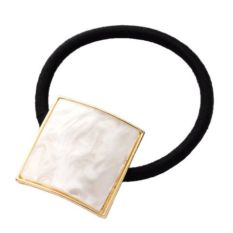 ヘアアクセサリー レディース ヘアゴム 髪留め まとめ髪 マーブル シェル風 ニュアンスカラー スクエア 四角 縁取り ホワイト cream dot ゆうパケット [ホワイト_ワンサイズ]