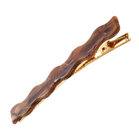 上品な艶感&波打つようなウェーブラインが、ヘアアレンジに抜け感を即プラス。単品使いはもちろん、色違いや異なるデザインのクリップとの重ね着けにも◎明るめながらも落ち着きのあるカラーリングも素敵です。
