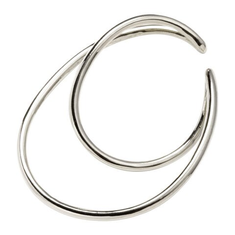 大ぶりクロスフープの片耳用イヤーカフ。立体感のあるダブルフープラインが簡単に重ね着け風の“こなれ”た着こなしを実現。大ぶりながらも軽やかな仕上がりで幅広いコーデに使いやすい◎