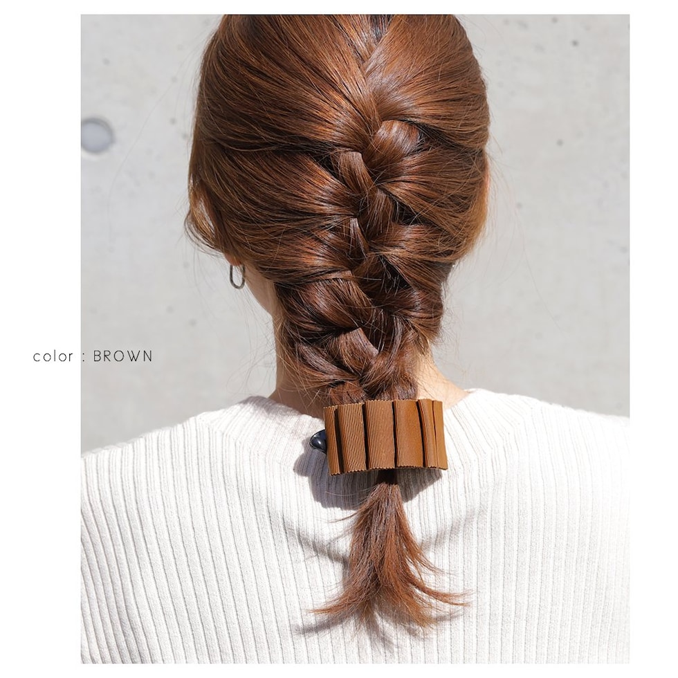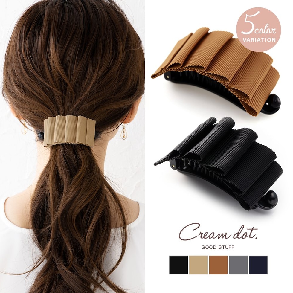 ヘアアクセサリー レディース ヘアクリップ 髪留め まとめ髪 アーチ柄 グログラン リボン しっかり留まる ネイビー cream dot ゆうパケット [ブラウン_ワンサイズ]