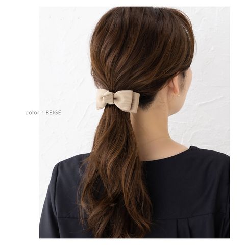 ヘアアクセサリー レディース ヘアクリップ 髪留め まとめ髪 アーチ柄 グログラン リボン しっかり留まる cream dot ゆうパケット [ベージュ_ワンサイズ]