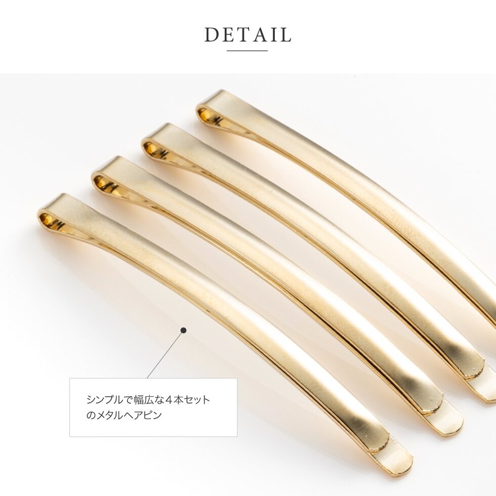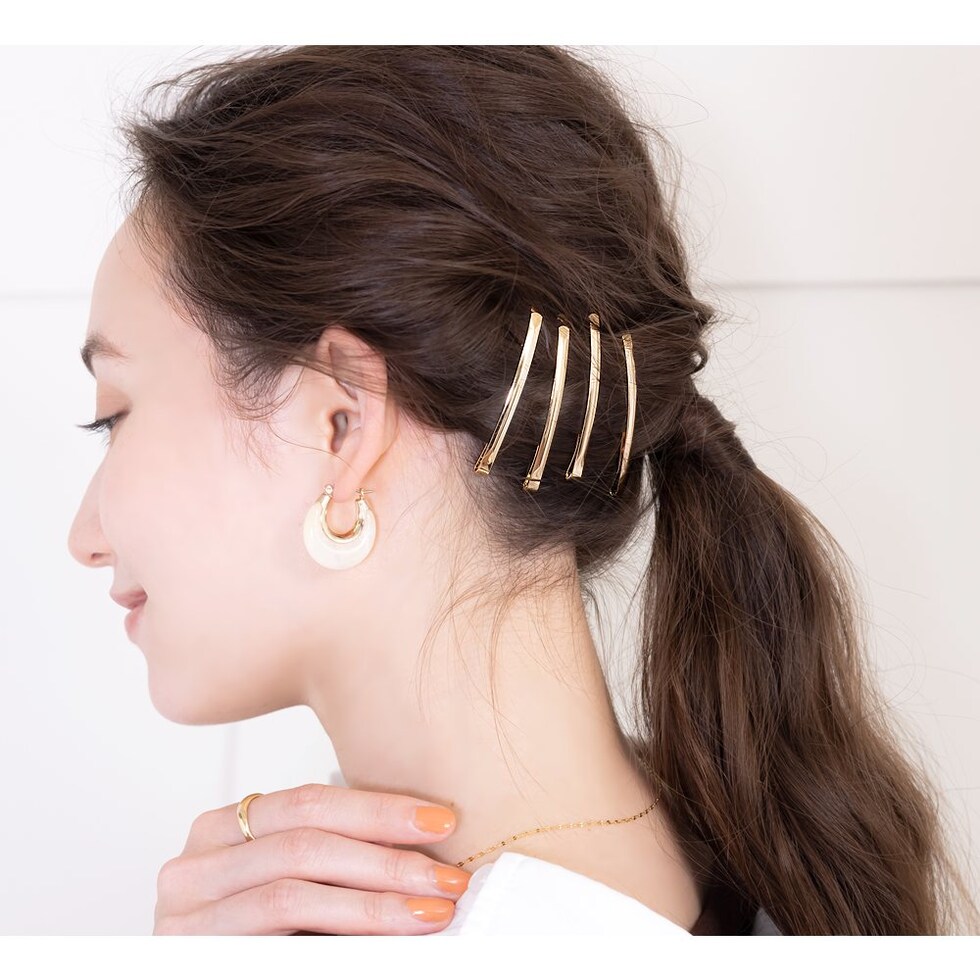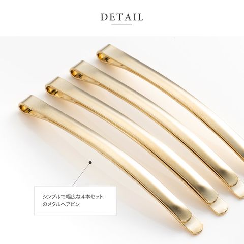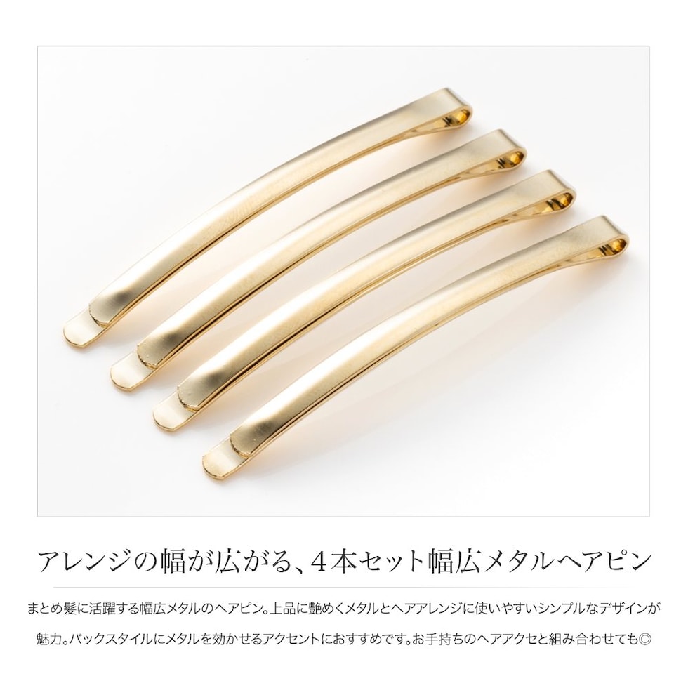 まとめ髪に活躍する幅広メタルのヘアピン。上品に艶めくメタルとヘアアレンジに使いやすいシンプルなデザインが魅力。バックスタイルにメタルを効かせるアクセントにおすすめです。お手持ちのヘアアクセと組み合わせても◎