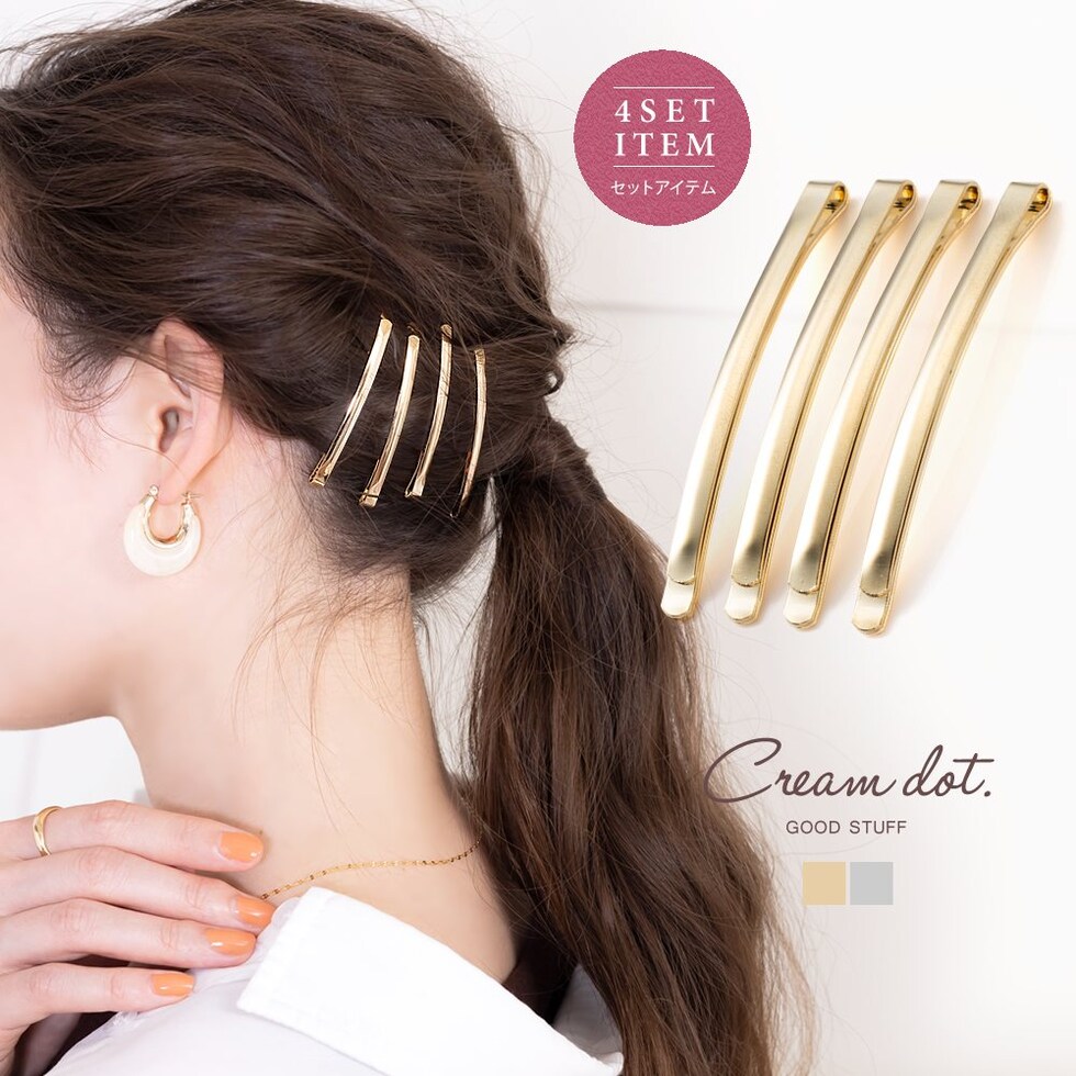 ヘアアクセサリー レディース 4本セット ヘアピン ヘアクリップ 大きめ 髪留め まとめ髪 幅広 ワイド メタル カーブ アクセント cream dot ゆうパケット [シルバー_アソート]