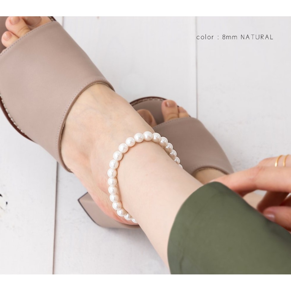 アンクレット レディース アンクレット パール ゴム仕様 伸びる 4mm 6mm 8mm 10mm 大粒 小粒 ナチュラル cream dot ゆうパケット [ナチュラル_4mm]