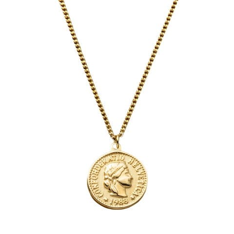 表は人物のレリーフ、裏はナンバーデザインのリバーシブルとして着用できるコインモチーフのステンレス製ロングネックレス。上品に煌めくモチーフと華奢チェーンとの組み合わせが大人コーデのアクセント◎錆びにくく傷に強いステンレス製でデイリーに活躍間違いナシのアイテムです。