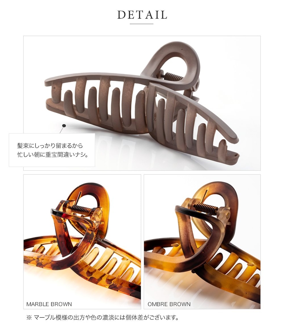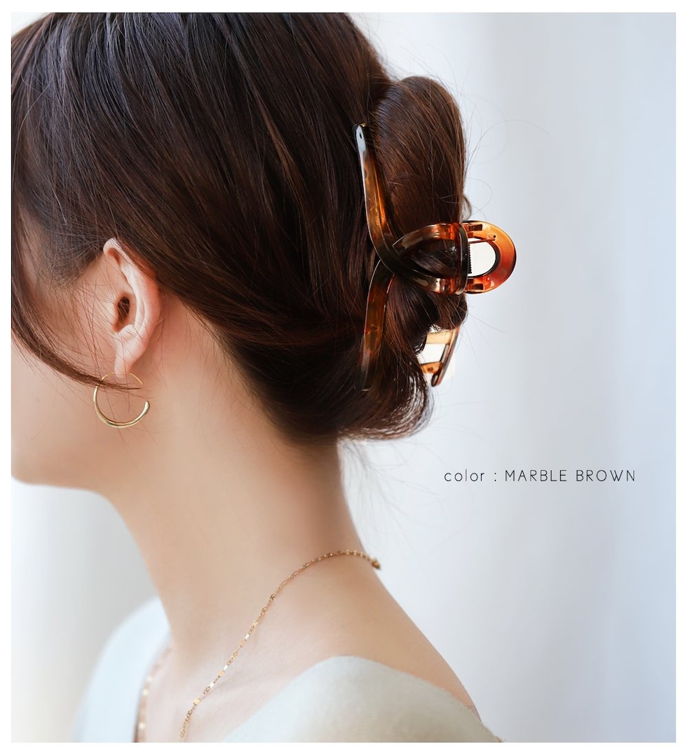 ヘアアクセサリー レディース バンスクリップ ヘアクリップ 大きめ 髪留め まとめ髪 ループデザイン クロス マット 艶消し 艶あり 2タイプ マーブル くすみカラー ワイド ブラック cream dot 定形外郵便 [オンブレブラウン_ワンサイズ]