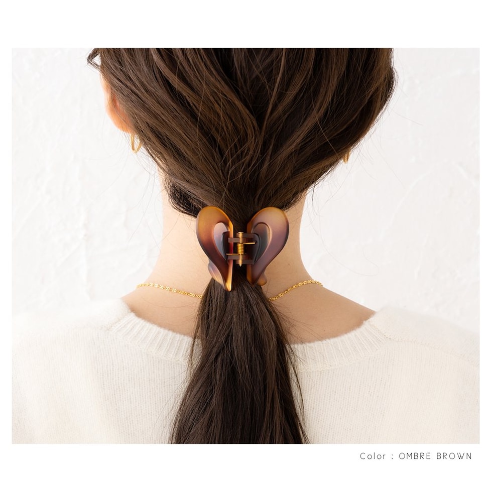 ヘアアクセサリー レディース バンスクリップ しっかり留まる ヘアクリップ まとめ髪 髪留め マット 艶消し 隠れハート オンブレ 黒 cream dot 定形外郵便 [オンブレブラウン_ワンサイズ]