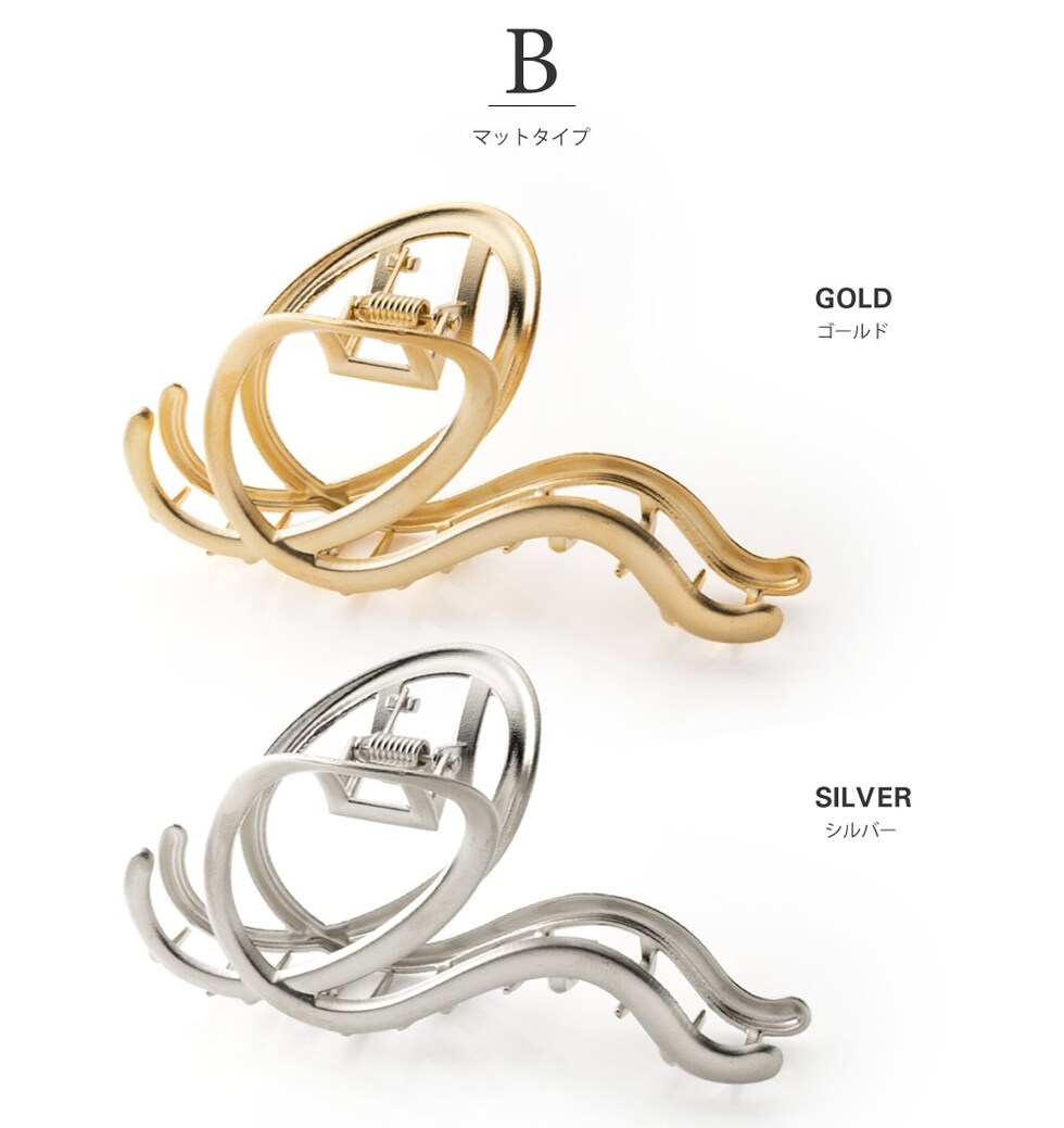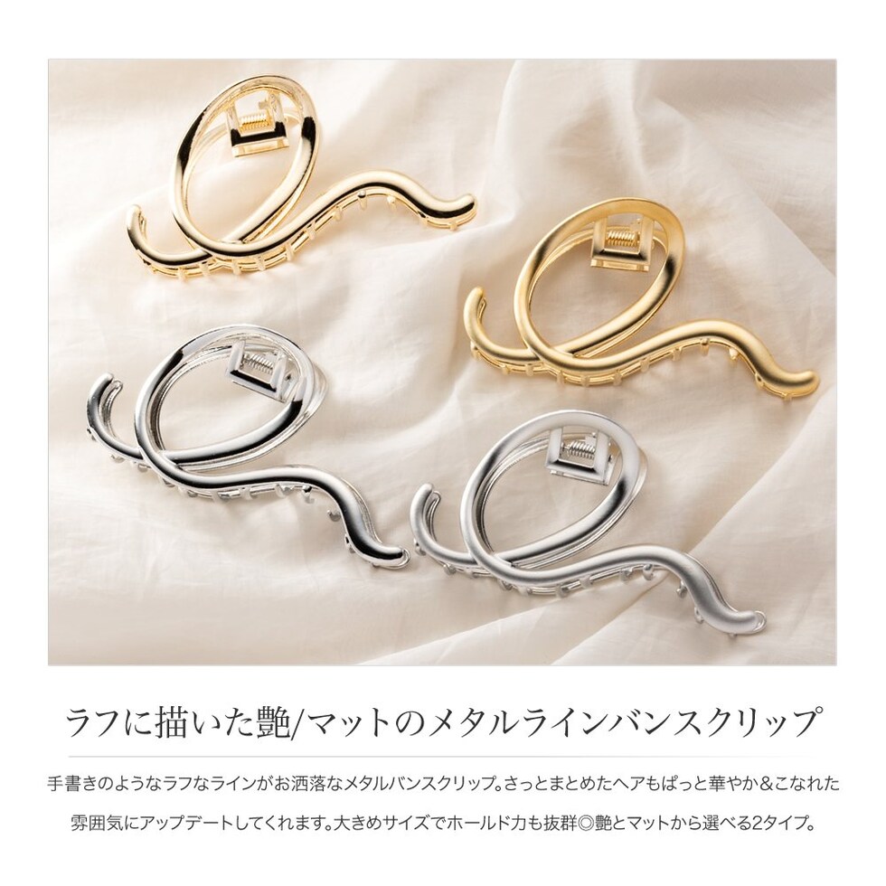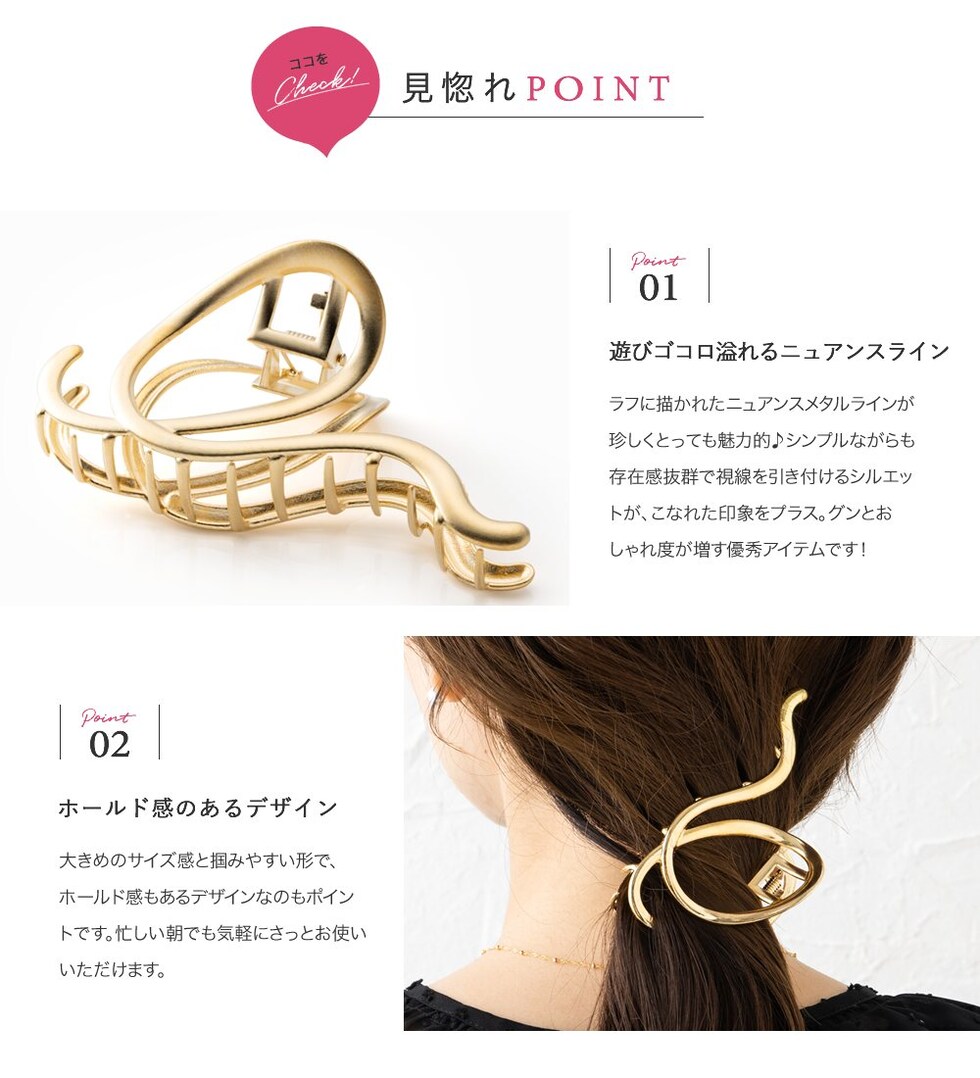 手書きのようなラフなラインがお洒落なメタルバンスクリップ。さっとまとめたヘアもぱっと華やか&こなれた雰囲気にアップデートしてくれます。大きめサイズでホールド力も抜群◎艶とマットから選べる2タイプ。