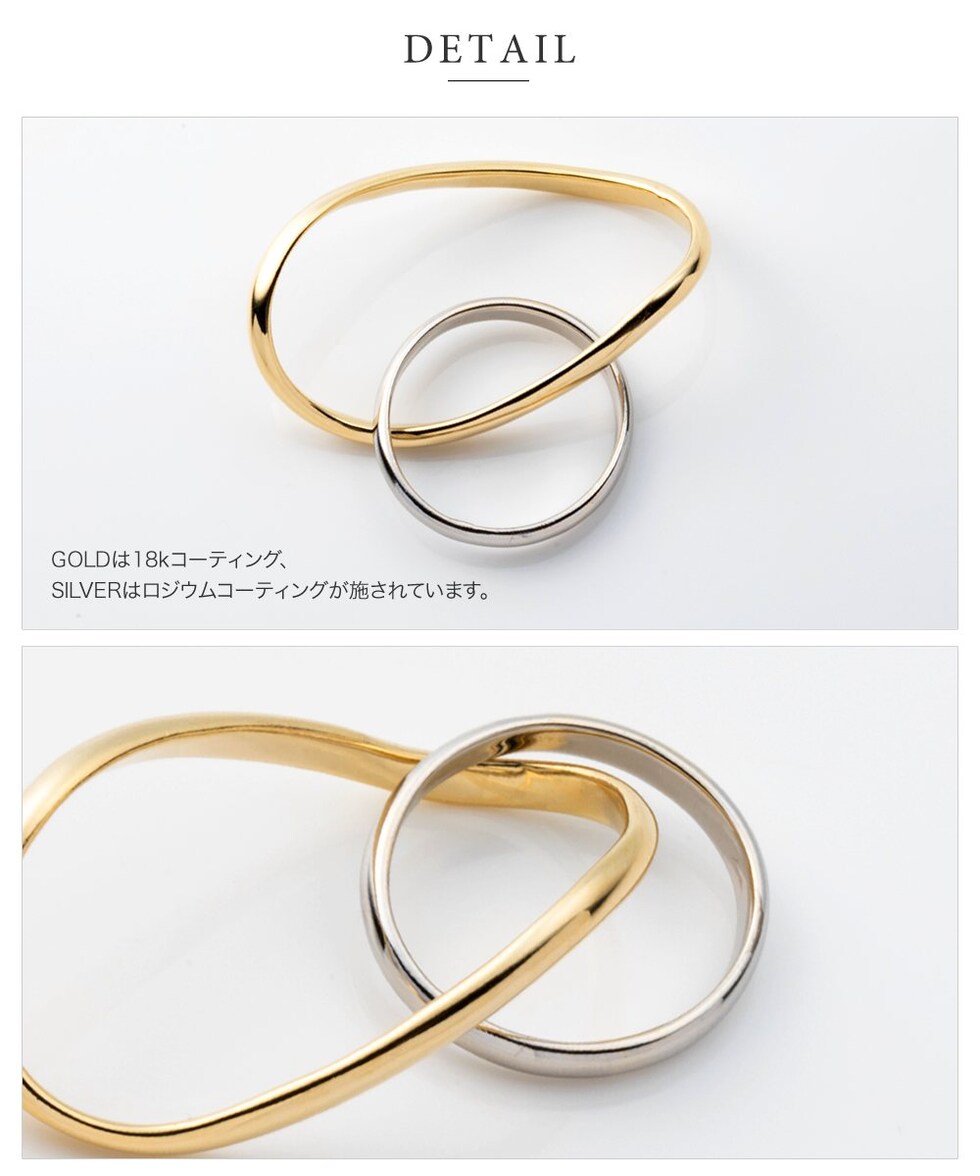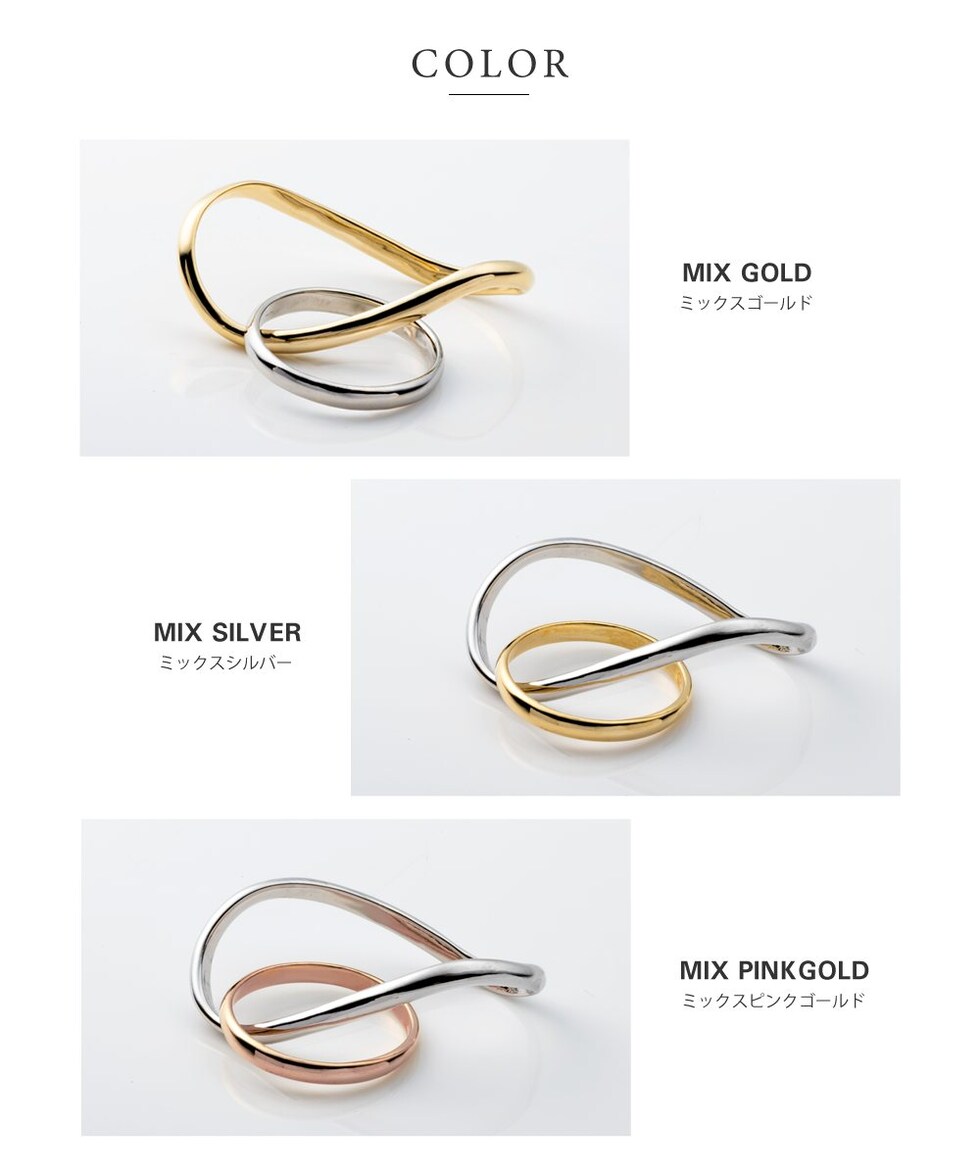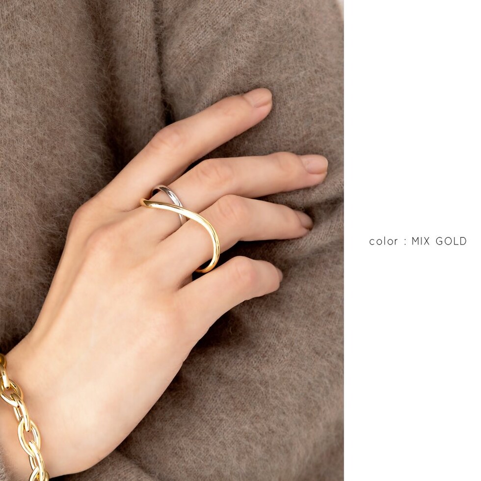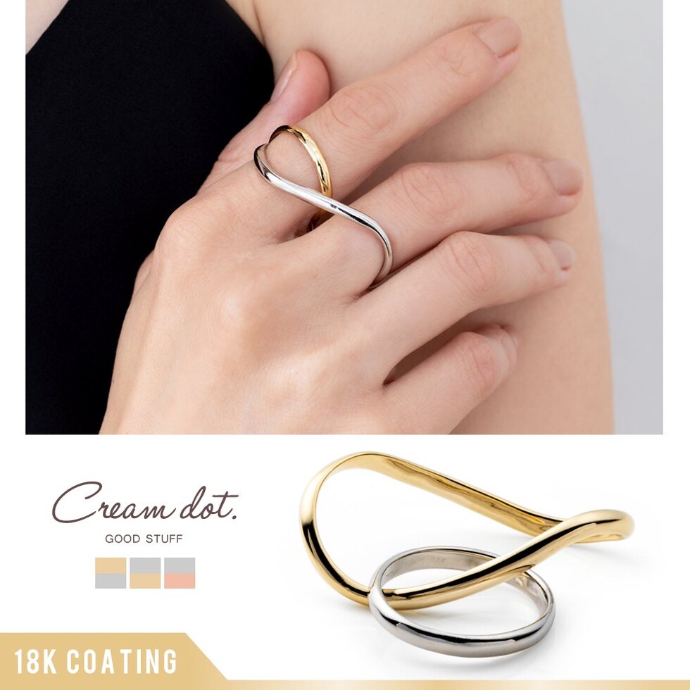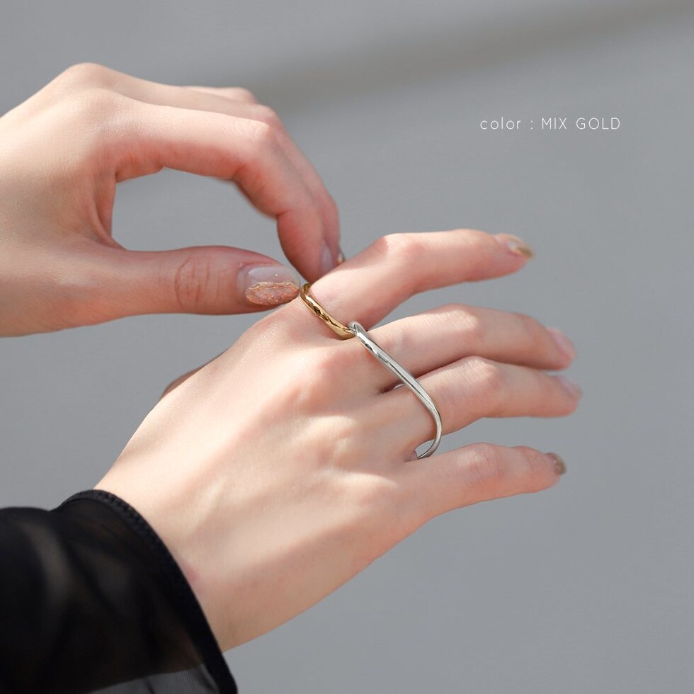 リング 指輪 レディース ダブルフィンガー メタル バイカラー コンビカラー 変形 レイヤード風 2本指 ウェーブ カーブライン 曲線 cream dot ゆうパケット [ミックスシルバー_ワンサイズ]