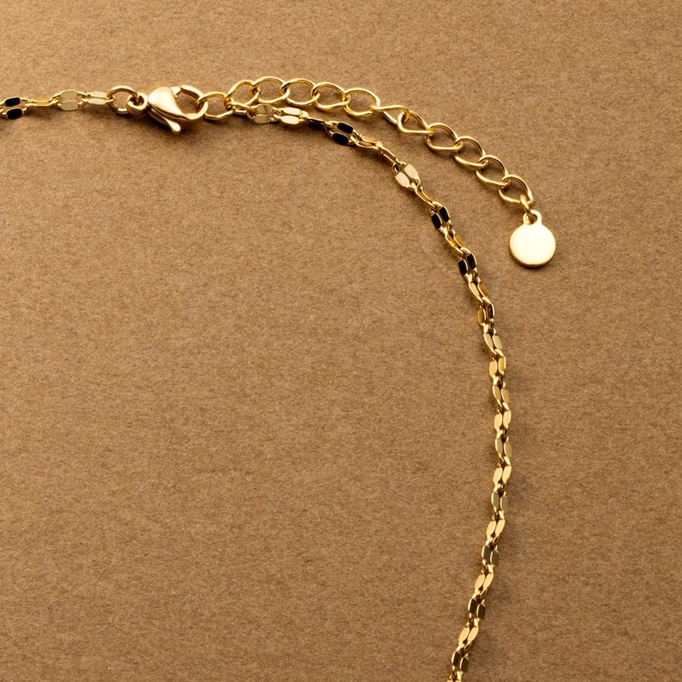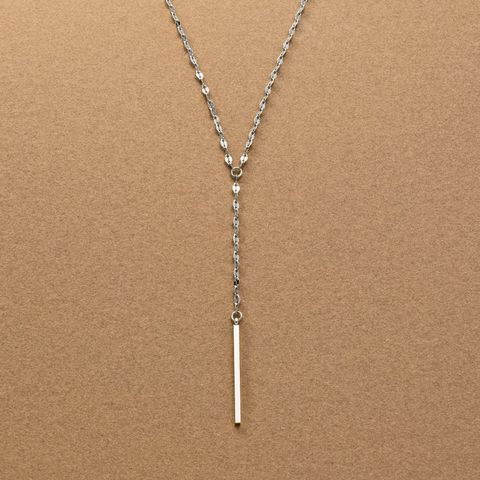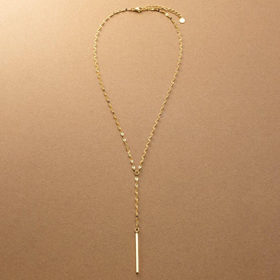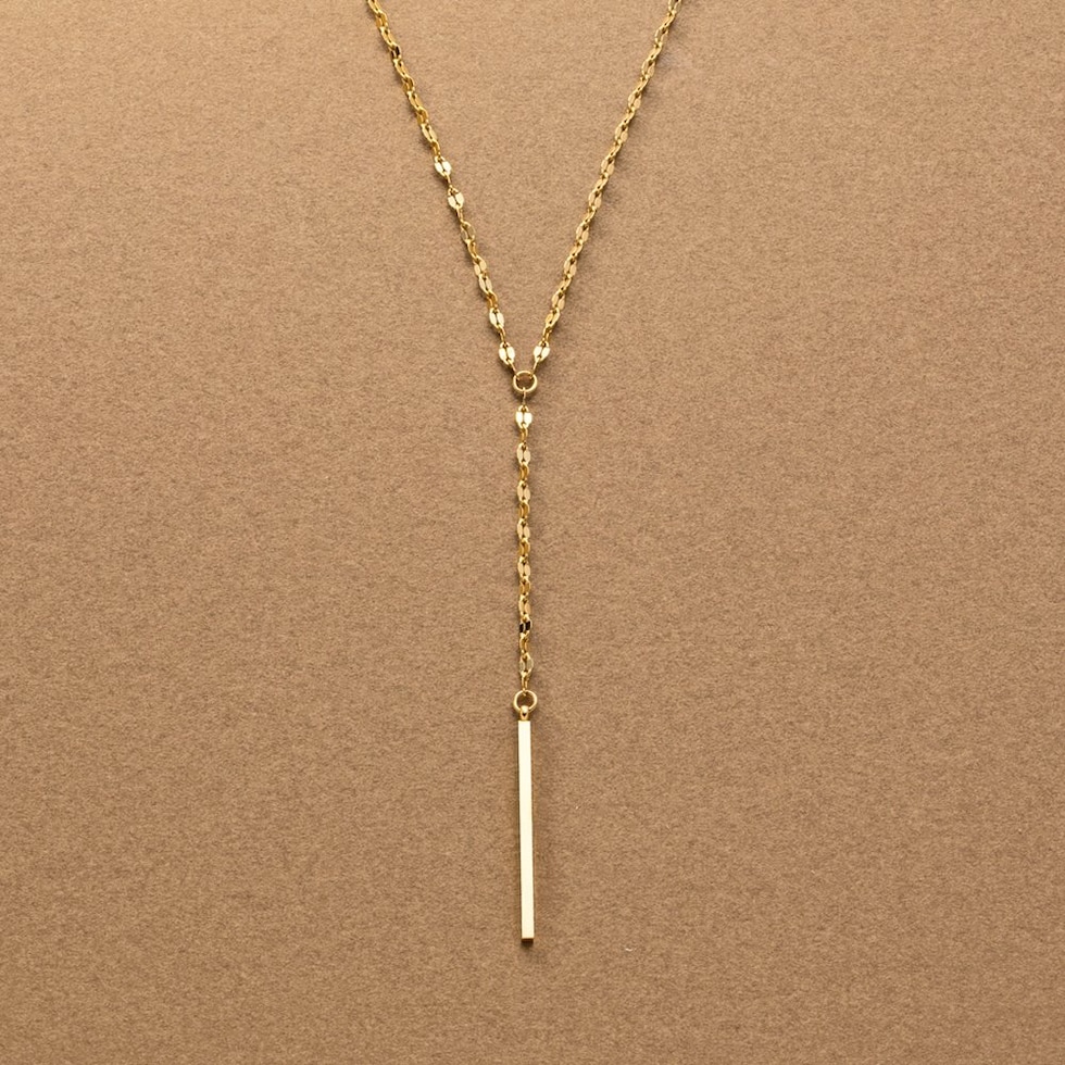 メタルバーとペタルチェーンが煌めくステンレス製Y字ロングネックレス。上品に煌めくモチーフと華奢チェーンとの組み合わせが大人コーデのアクセントにピッタリ◎錆びにくく傷に強いステンレス製でデイリーに活躍間違いナシのアイテムです。