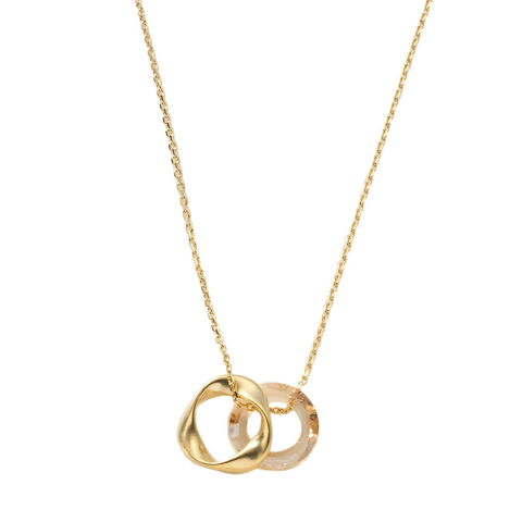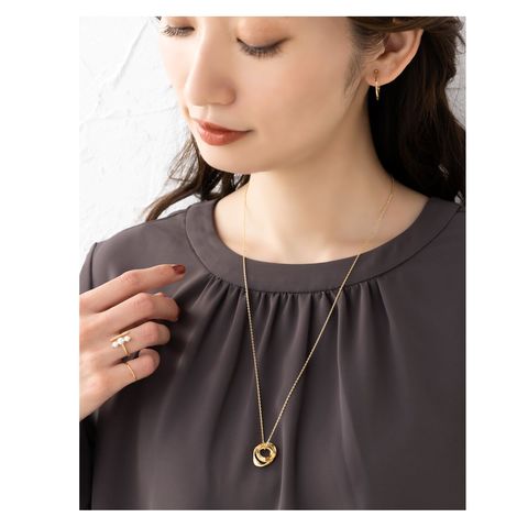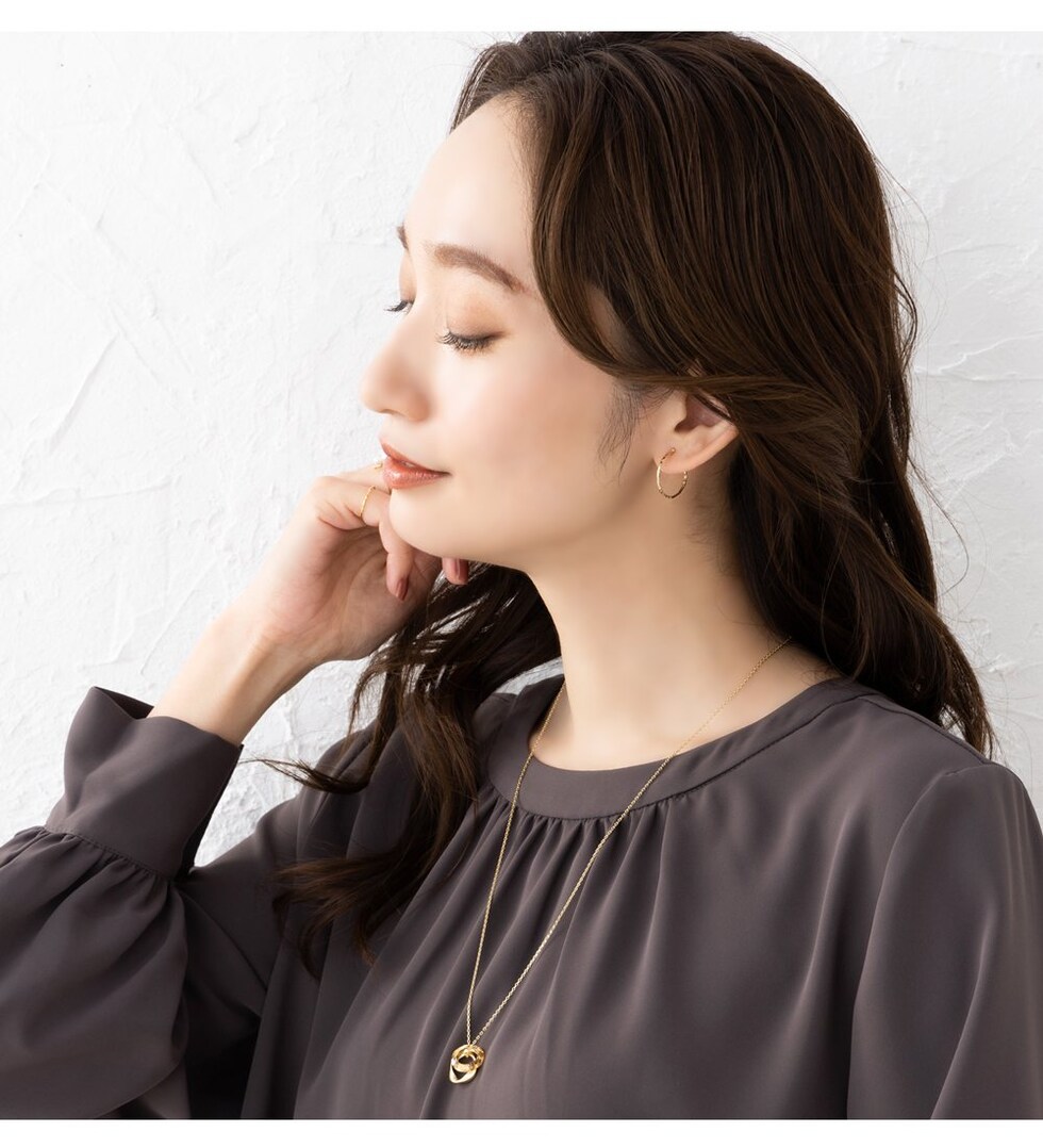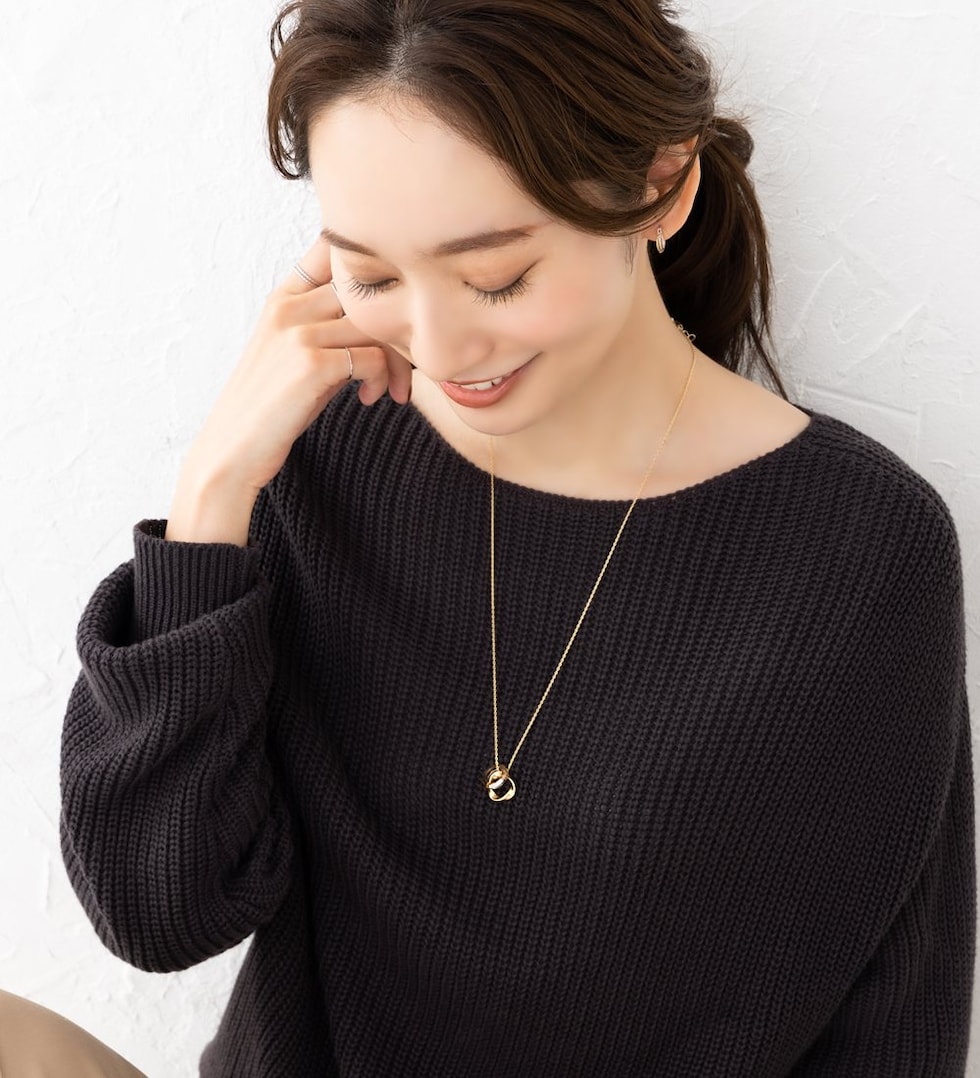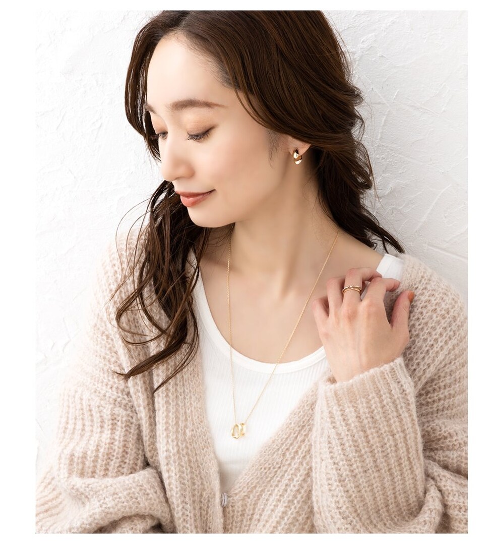 ダブルサークルのロングネックレス。セミマットなメタルと、フラットカットのパーツを組み合わせたデザインがオトナっぽさ香る上品な雰囲気を演出。デイリー使いのアクセントにもピッタリな一品です◎