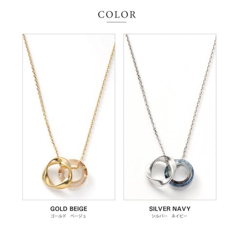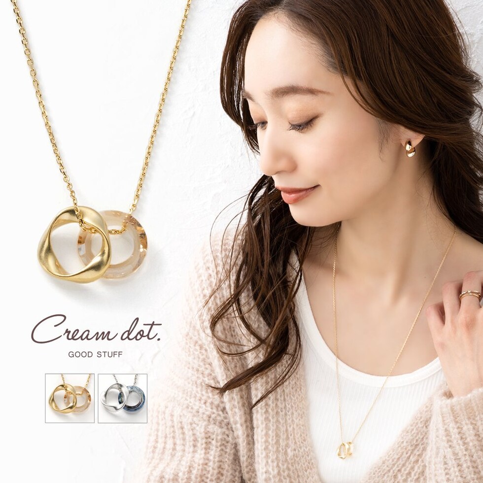 ネックレス レディース ロング チェーン サークル メタル セミマット ひねり 多面カット ネイビー cream dot ゆうパケット [ゴールド×ベージュ_ワンサイズ]
