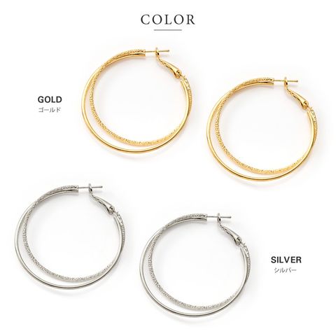 ピアス レディース フープ 大ぶり キャッチレス バネ式 開閉式 2連 メタル スターダスト加工 ダブルライン 大きめ ビッグ cream dot ゆうパケット [シルバー_ピアス]