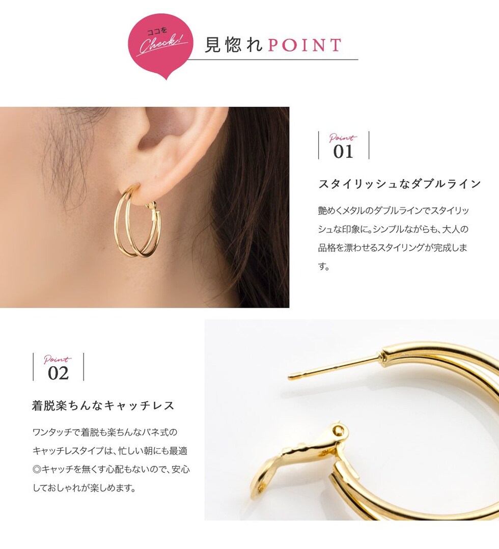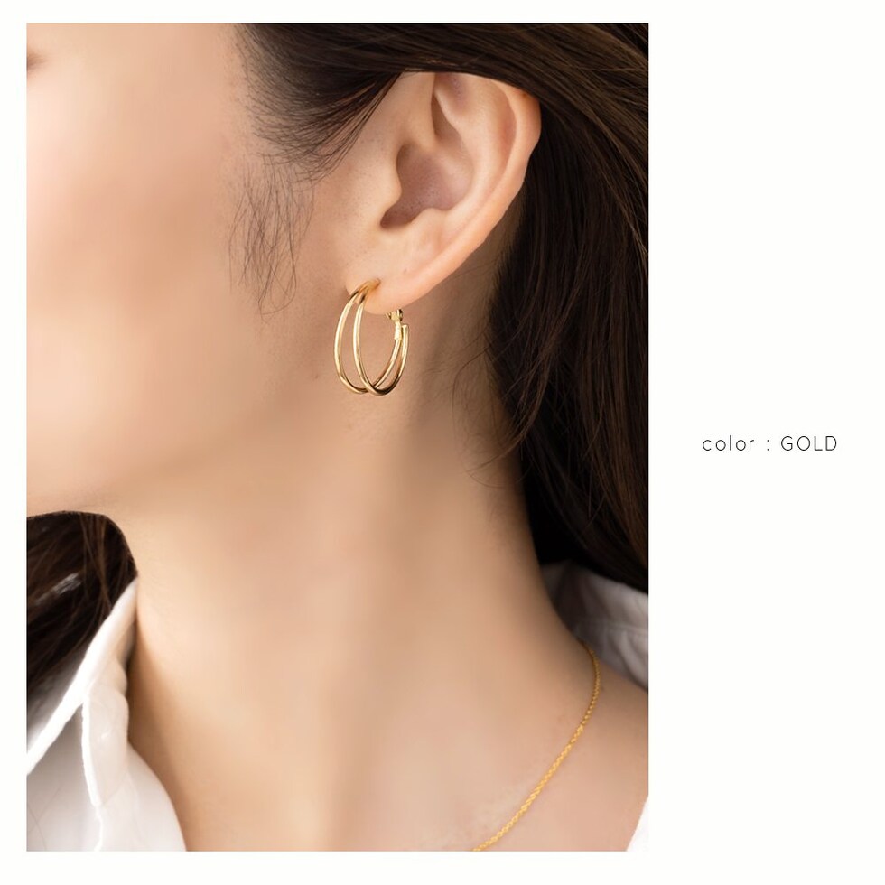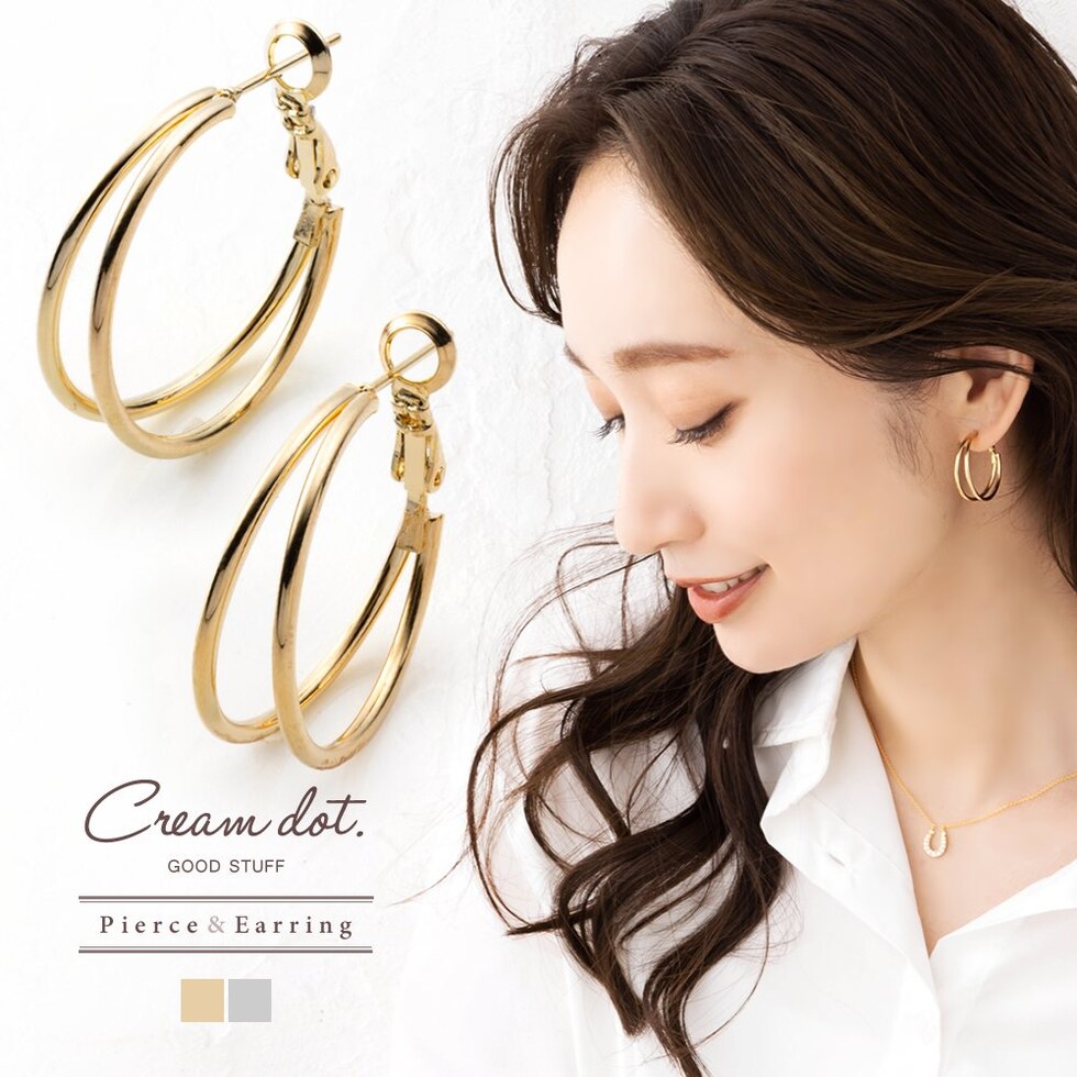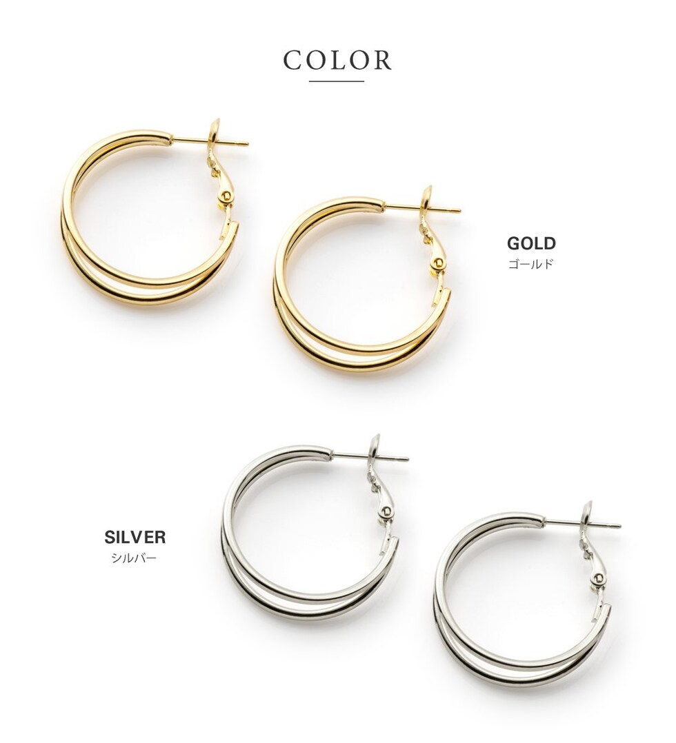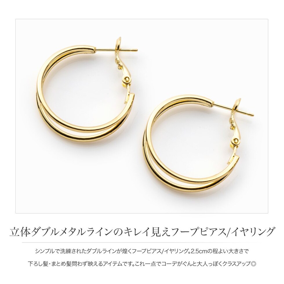 シンプルで洗練されたダブルラインが煌くフープピアス/イヤリング。2.5cmの程よい大きさで下ろし髪・まとめ髪問わず映えるアイテムです。これ一点でコーデがぐんと大人っぽくクラスアップ◎