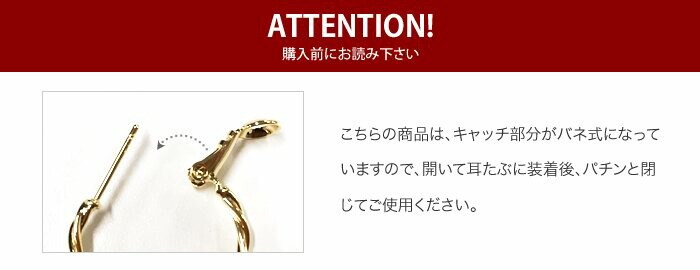 ワンタッチで着脱も楽ちんなバネ式のキャッチレスタイプは、忙しい朝にも最適◎キャッチを無くす心配もないので、安心しておしゃれが楽しめます。