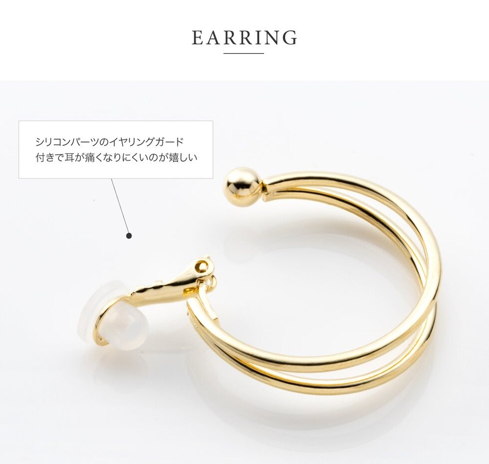 ピアス イヤリング レディース シリコンカバー バネ式 フープ フープ ダブルライン メタル キャッチレス cream dot ゆうパケット [シルバー_ピアス]