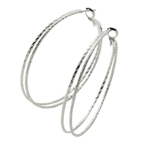 ピアス レディース フープ 大ぶり キャッチレス バネ式 開閉式 2連 メタル 梨地加工 テクスチャー加工 ダブルライン 大きめ ビッグ cream dot ゆうパケット [シルバー_ピアス]