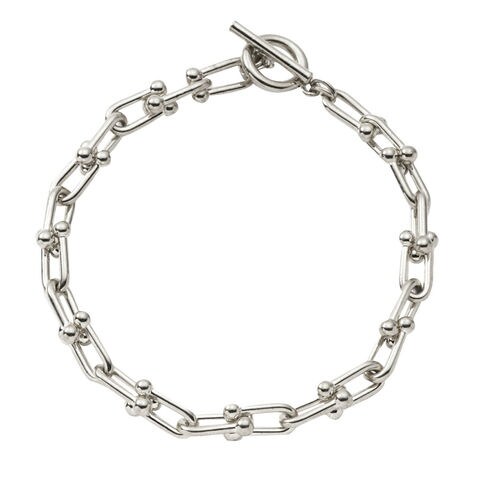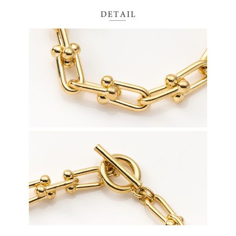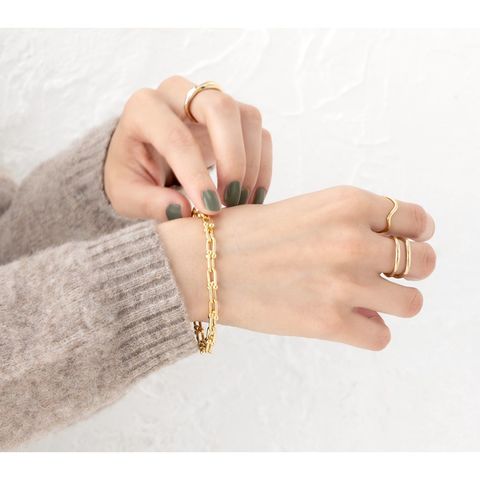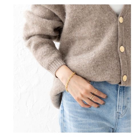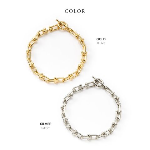 オーバルとスフィアをMIXしたデザインが新鮮な“リンキングチェーン”のブレスレット。太すぎない程よいボリューム感でコーデに合わせやすく、女性らしい手元に。マンテルタイプでさりげなくトレンド感もアップ◎
