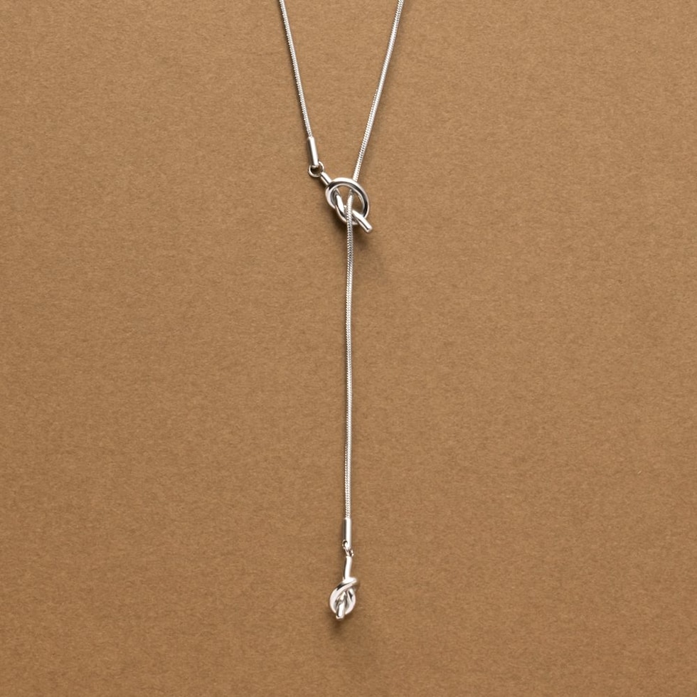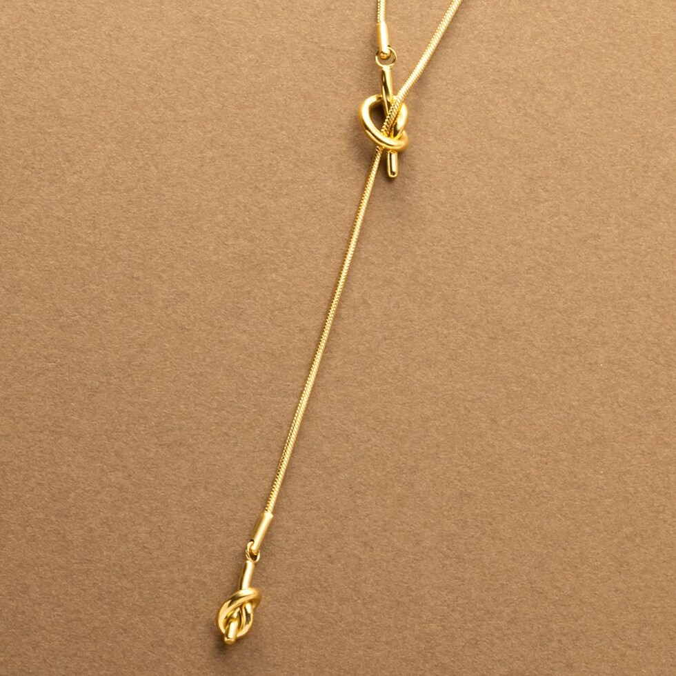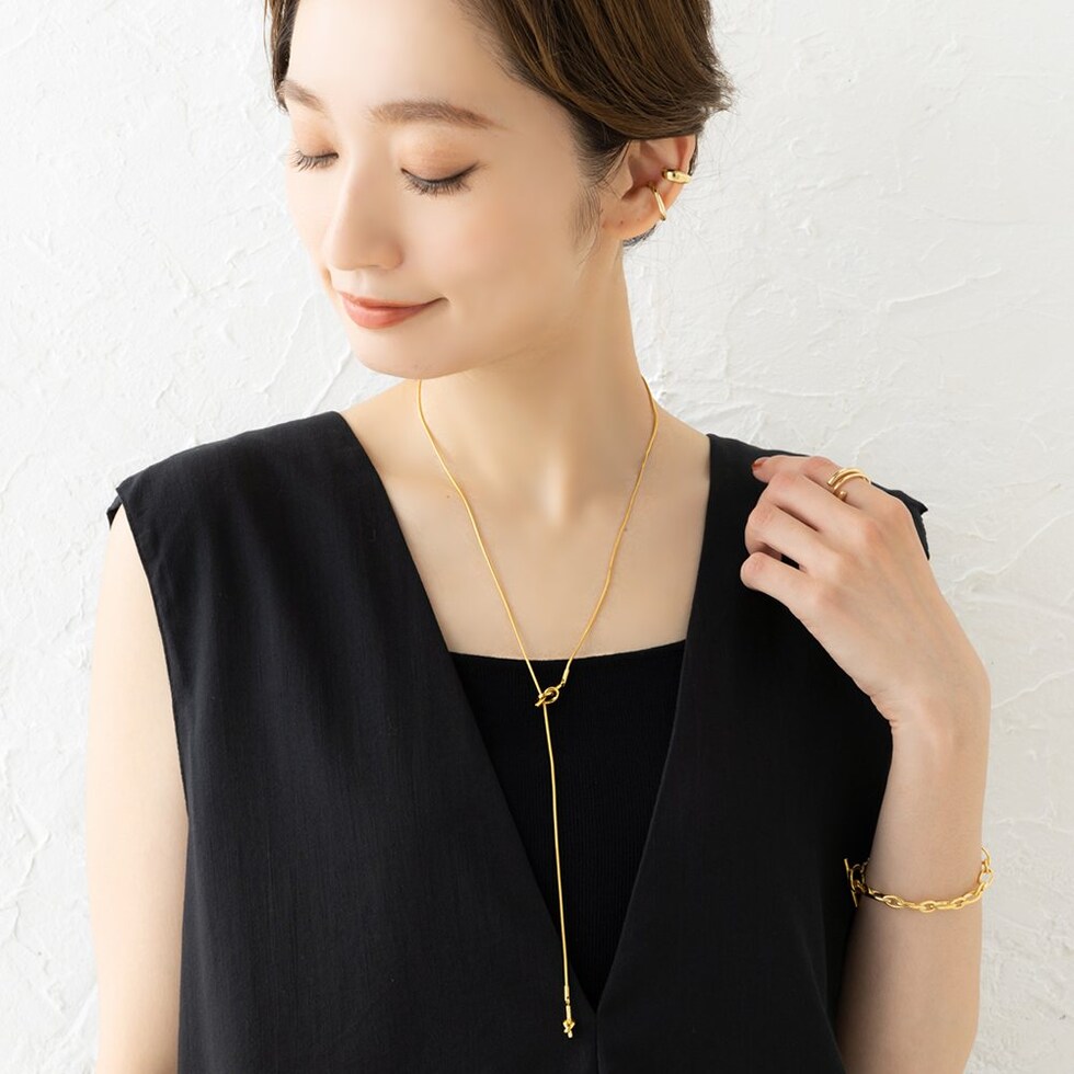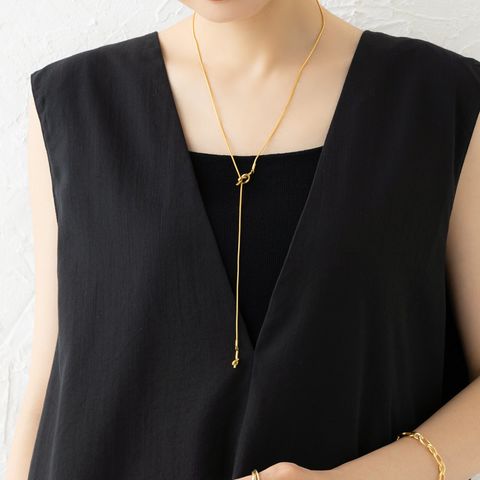 シンプルで洗練されたデザインが大人っぽいY字ロングネックレス。さりげないノットモチーフで品よく身につけられます◎錆びにくく傷に強いステンレス製でデイリーに活躍間違いナシのアイテムです。