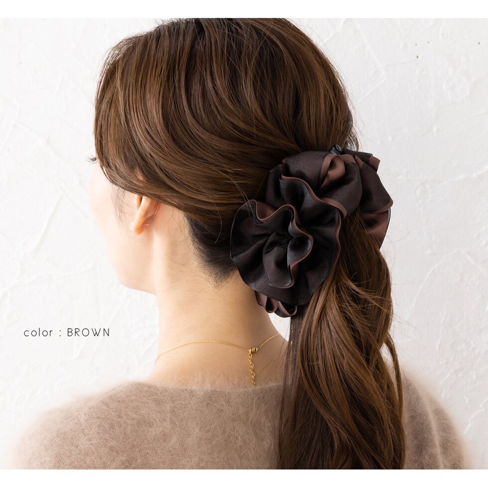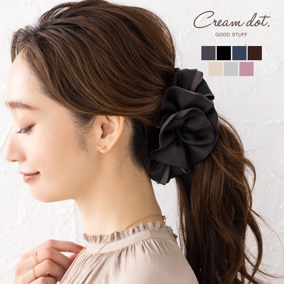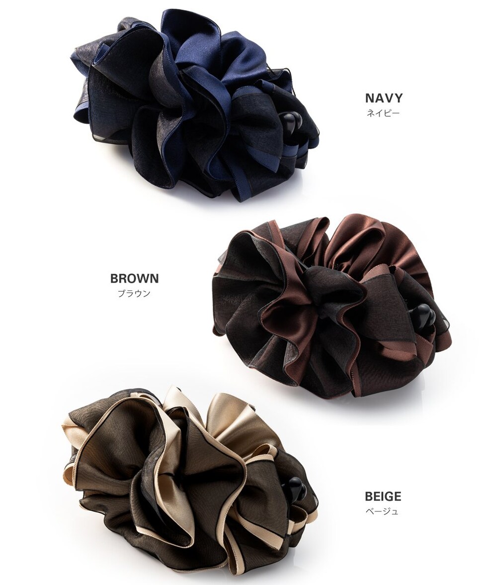 ヘアアクセサリー レディース バナナクリップ 大きめ しっかり留まる ヘアクリップ 髪留め まとめ髪 ボリューム ビッグ 光沢 くすみカラー バイカラー フリル シュシュ見え cream dot 定形外郵便 [ブラウン_ワンサイズ]