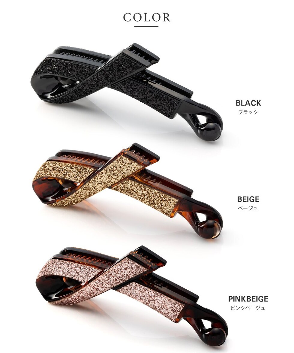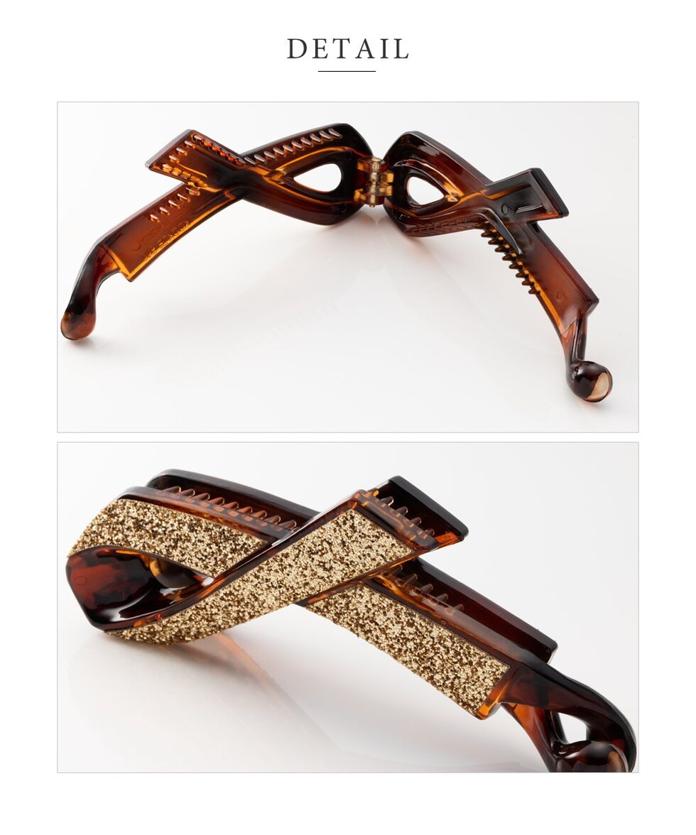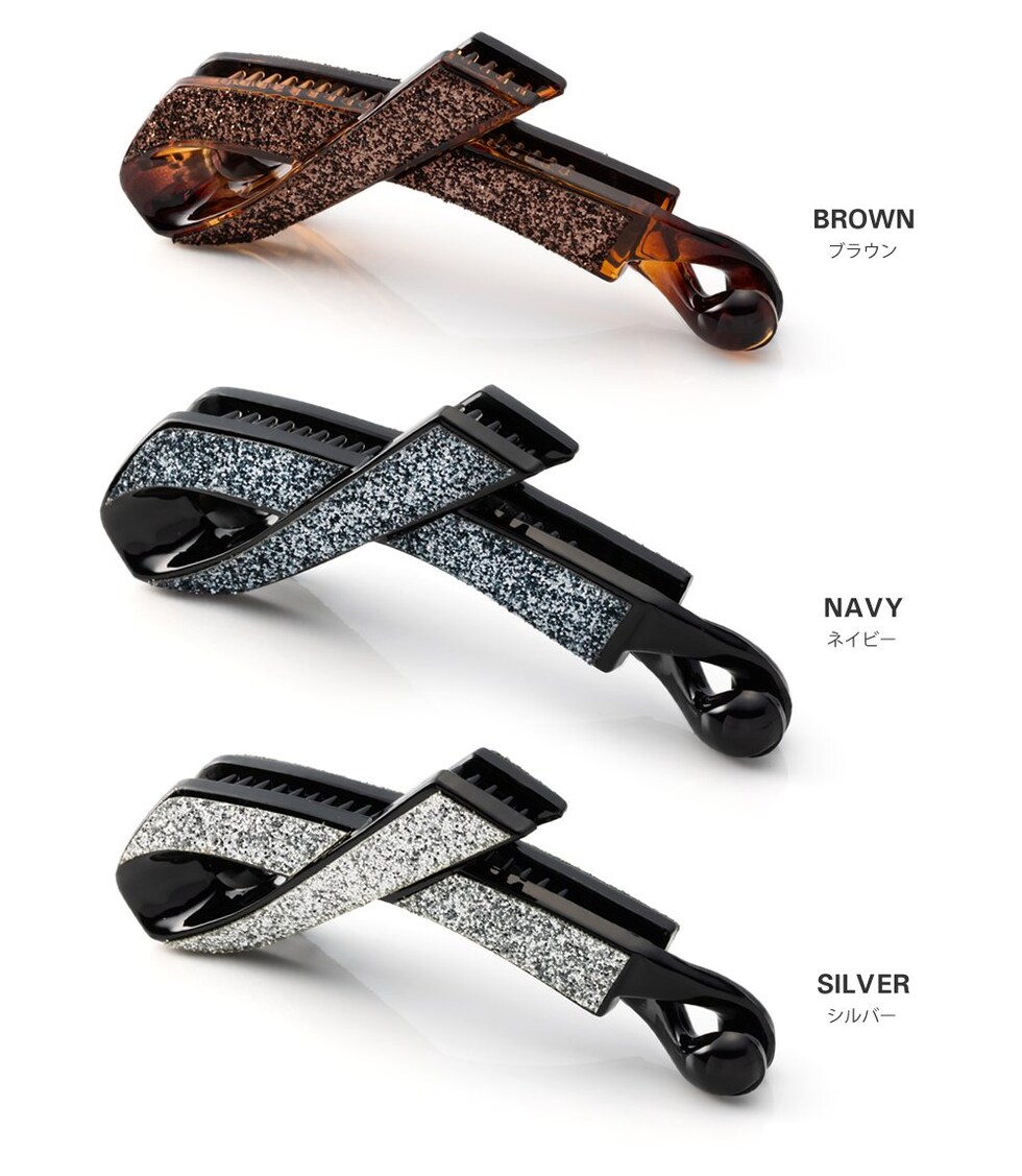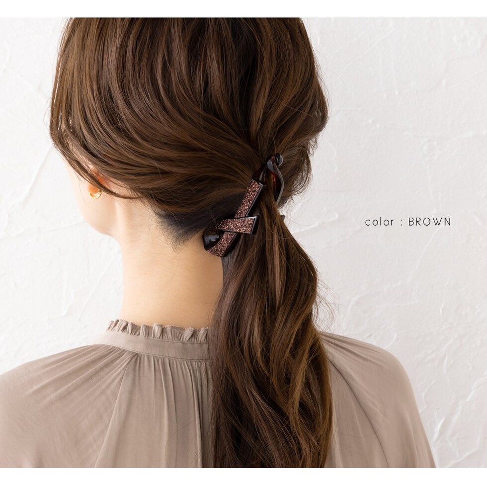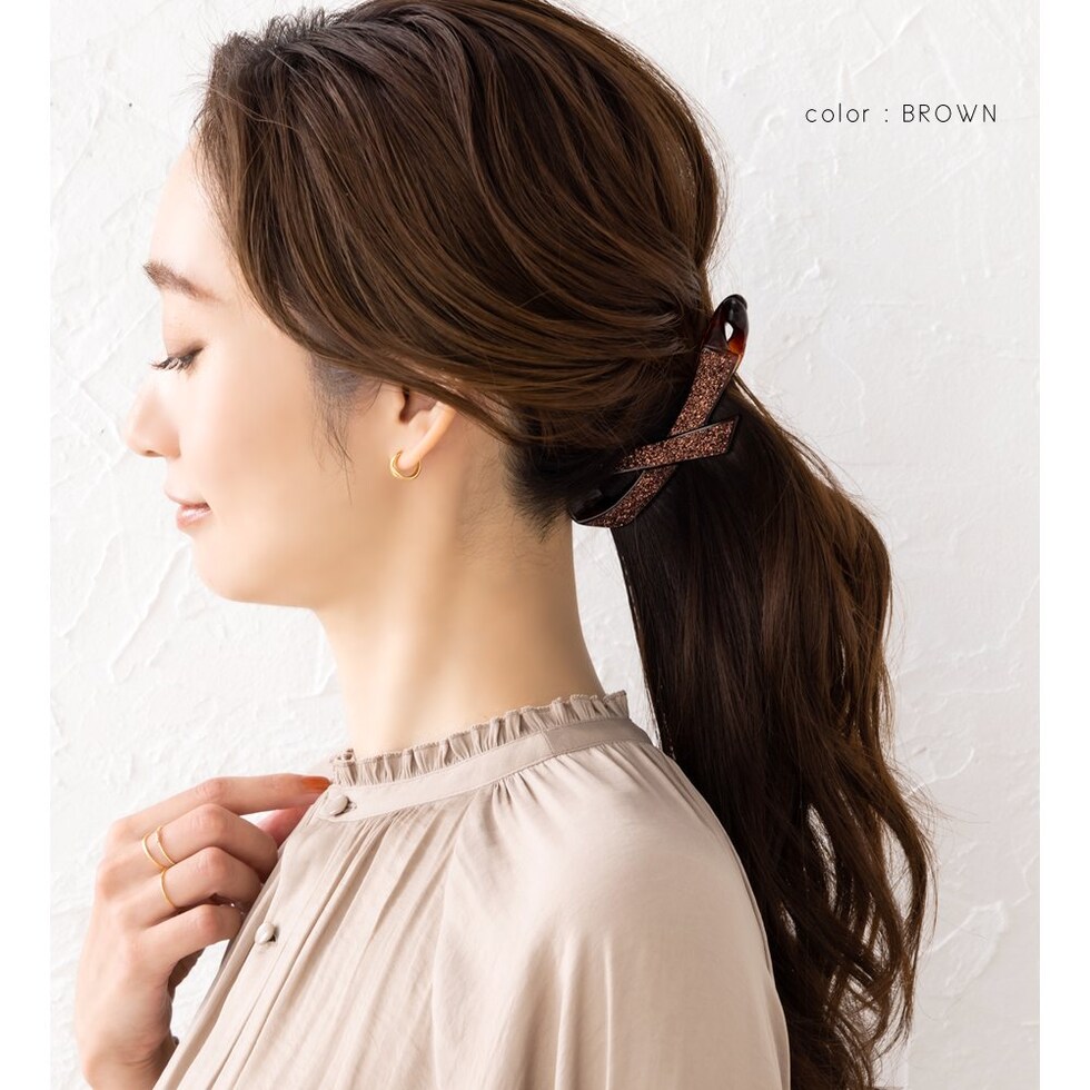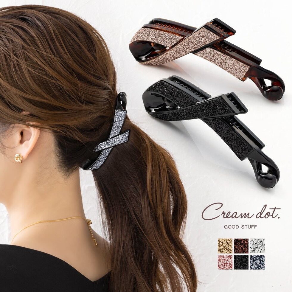 ヘアアクセサリー レディース バナナクリップ しっかり留まる ヘアクリップ 髪留め まとめ髪 ノット 結び目 ラメグリッター クロス cream dot ゆうパケット [ブラウン_ワンサイズ]