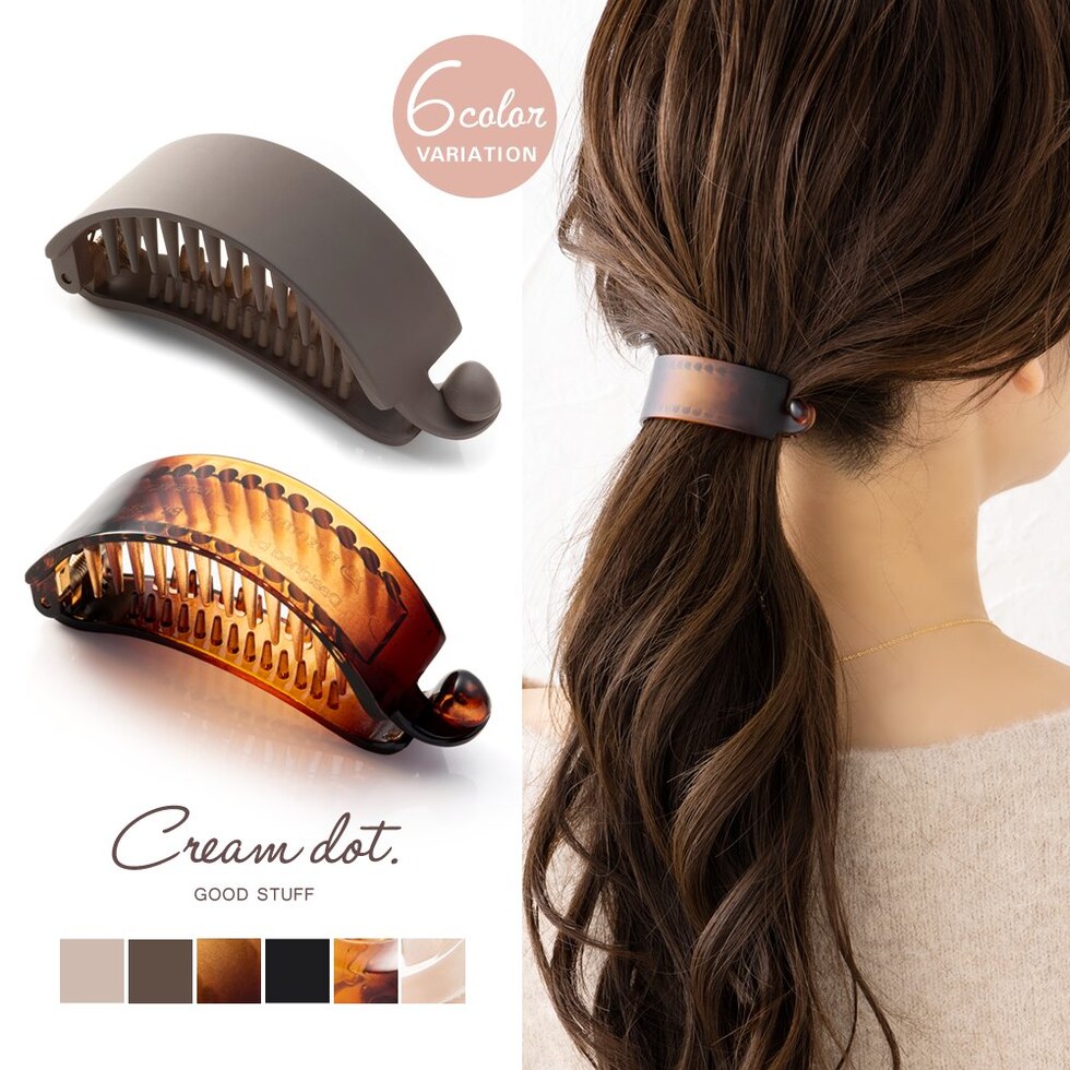 ヘアアクセサリー レディース ヘアクリップ しっかり留まる アーチ型 まとめ髪 髪留め マット 艶消し 艶あり 2タイプ マーブル オンブレ 黒 cream dot ゆうパケット [ベージュ_ワンサイズ]