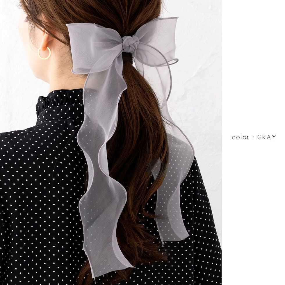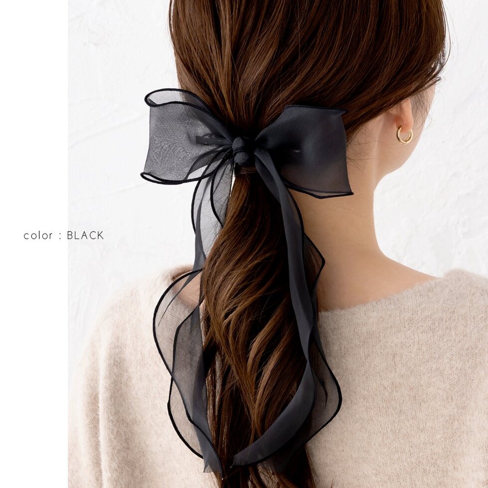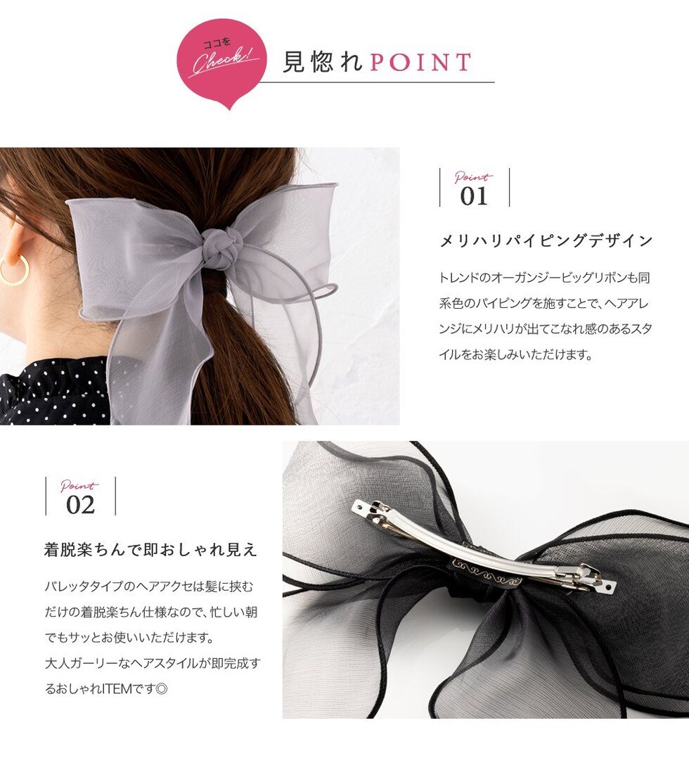 トレンドのオーガンジービッグリボンも同系色のパイピングを施すことで、ヘアアレンジにメリハリが出てこなれ感のあるスタイルをお楽しみいただけます。