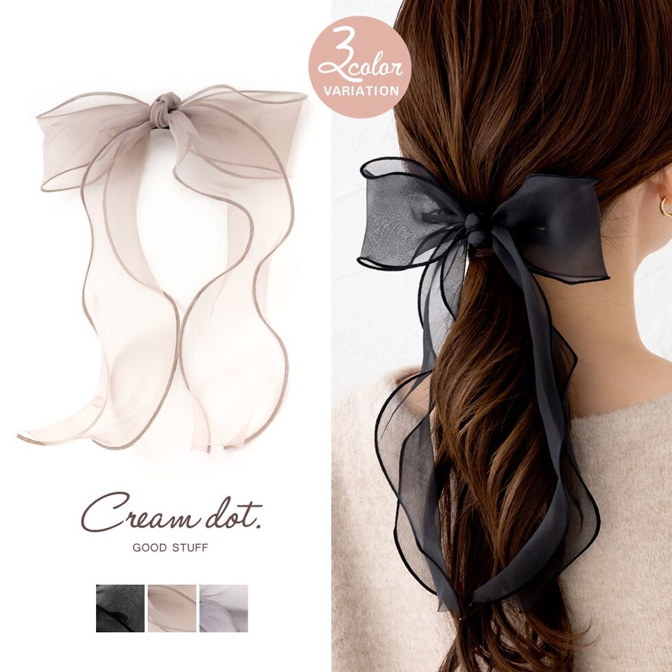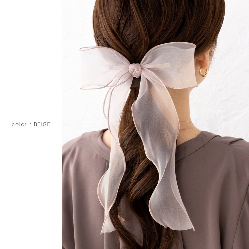 ヘアアクセサリー レディース バレッタ ヘアクリップ 大きめ 髪留め まとめ髪 リボン オーガンジー 透け感 グレー cream dot ゆうパケット [ベージュ_ワンサイズ]