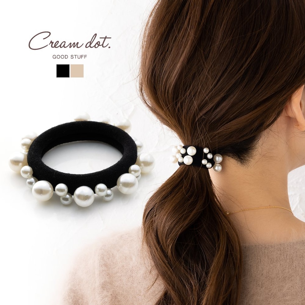 ヘアアクセサリー レディース ヘアゴム 髪留め まとめ髪 パール ランダムパール cream dot ゆうパケット [ベージュ_ワンサイズ]