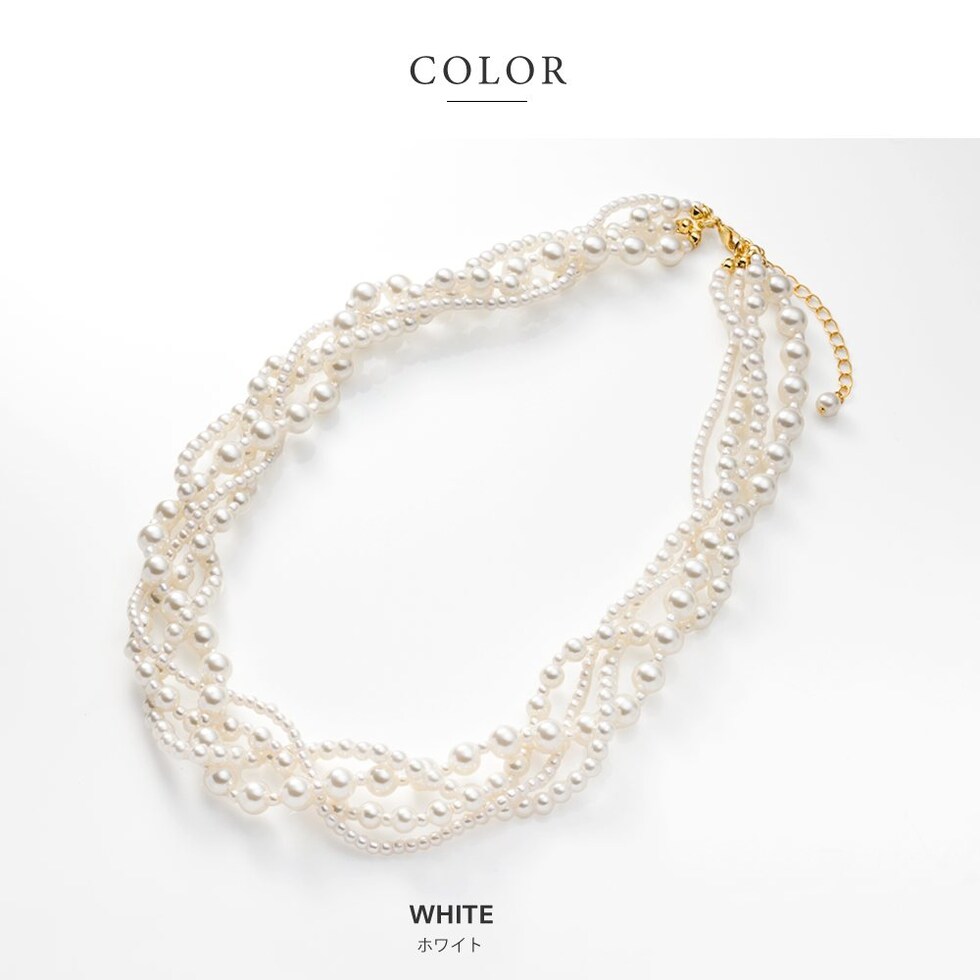 ネックレス レディース ショート パール 4連 ランダム ミックス ボリューム ホワイト cream dot ゆうパケット [ホワイト_ワンサイズ]