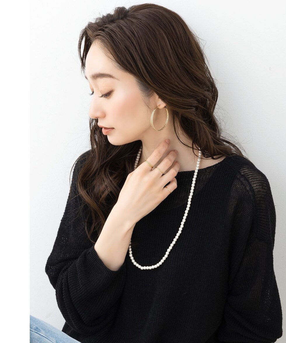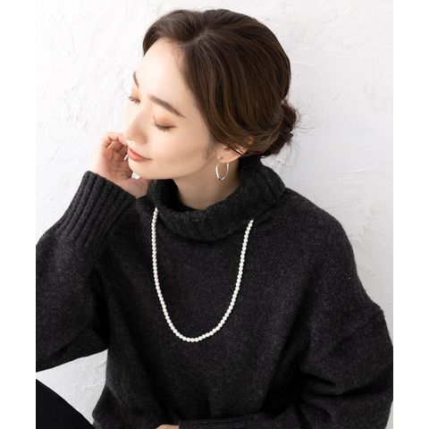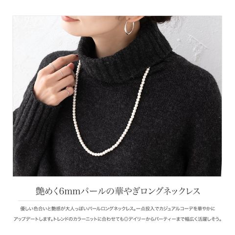優しい色合いと艶感が大人っぽいパールロングネックレス。一点投入でカジュアルコーデを華やかにアップデートします。トレンドのカラーニットに合わせても◎デイリーからパーティーまで幅広く活躍しそう。
