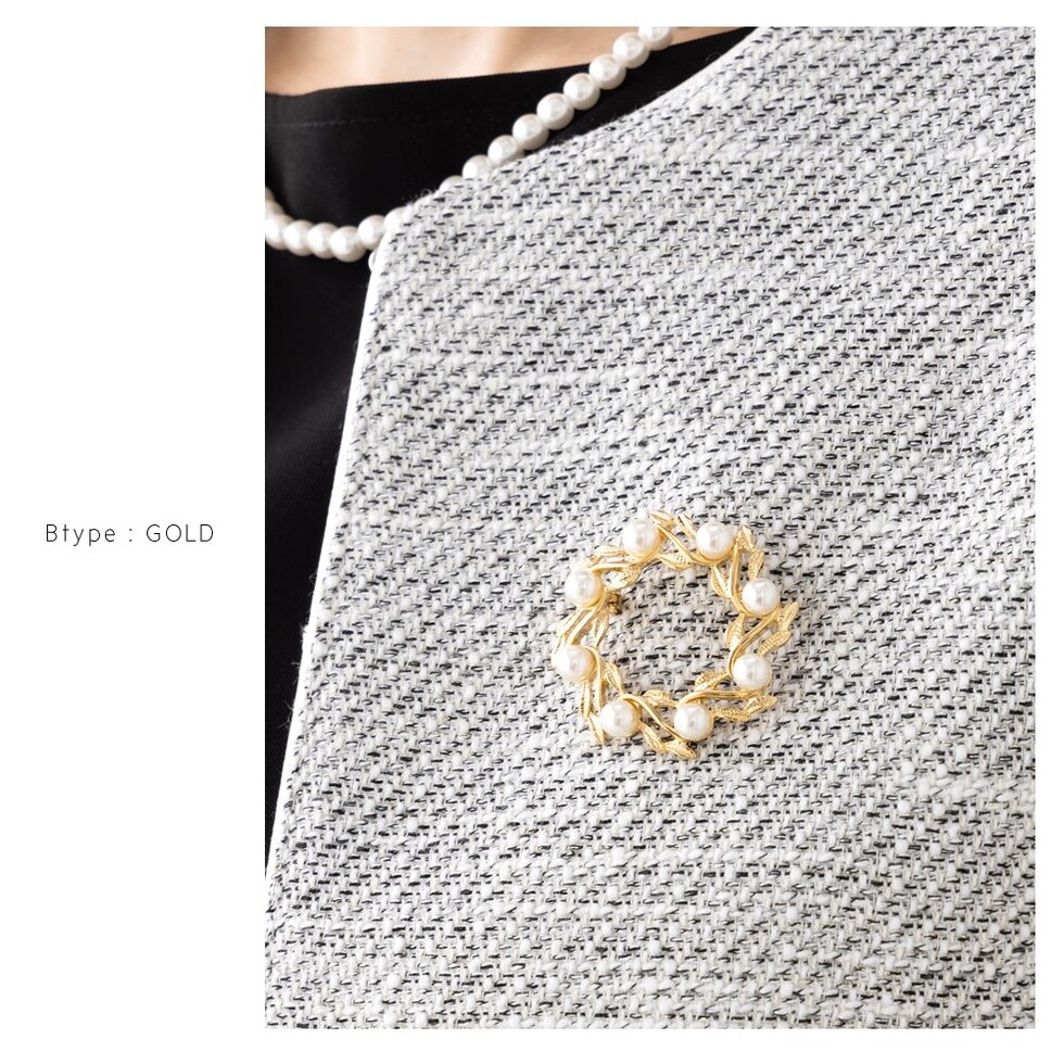 ブローチ フォーマル 卒業式 卒園式 入学式 入園式 ママスーツ コサージュ ピン パール リーフ サークル マット 艶消し 2タイプ cream dot ゆうパケット [A:ゴールド_ワンサイズ]