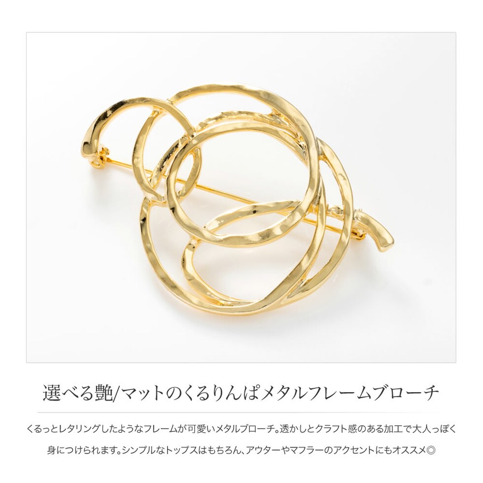 くるっとレタリングしたようなフレームが可愛いメタルブローチ。透かしとクラフト感のある加工で大人っぽく身につけられます。シンプルなトップスはもちろん、アウターやマフラーのアクセントにもオススメ◎