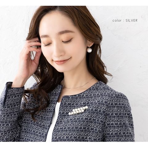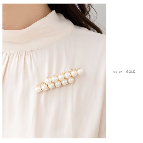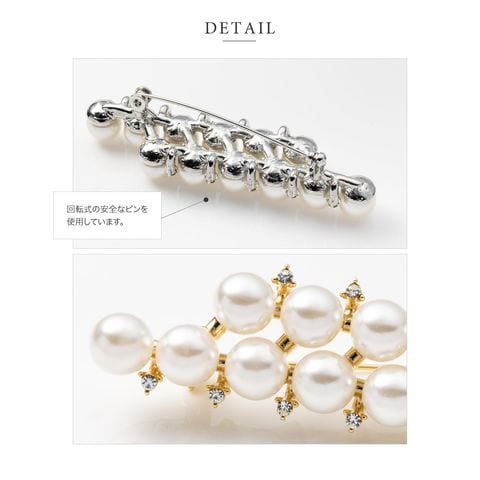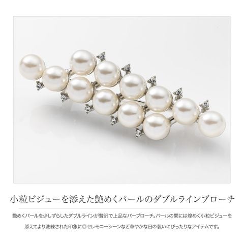 艶めくパールを少しずらしたダブルラインが贅沢で上品なバーブローチ。パールの間には煌めく小粒ビジューを添えてより洗練された印象に◎セレモニーシーンなど華やかな日の装いにぴったりなアイテムです。