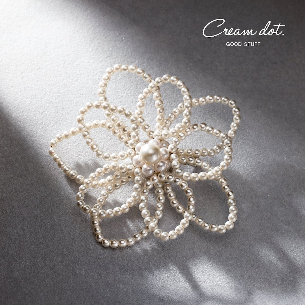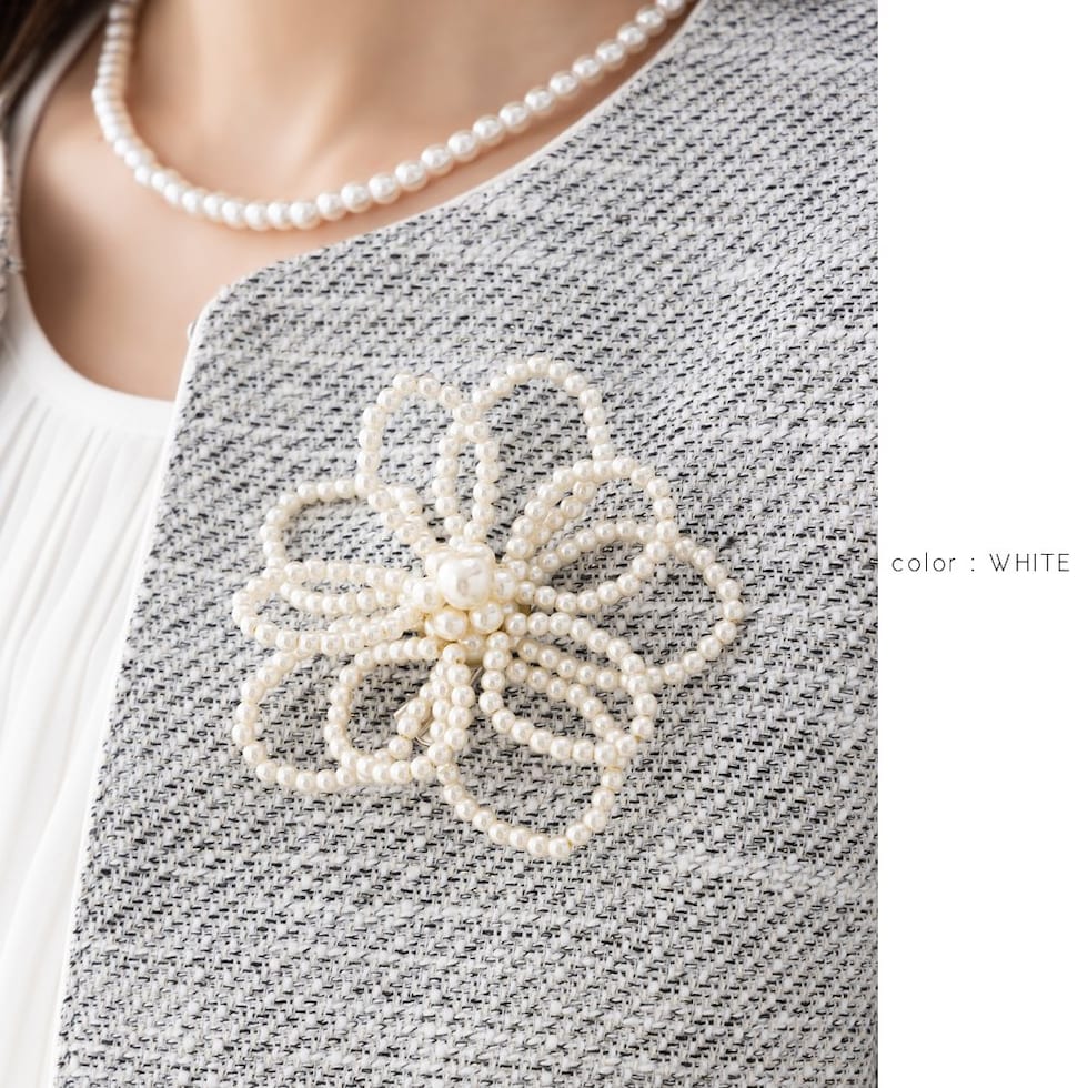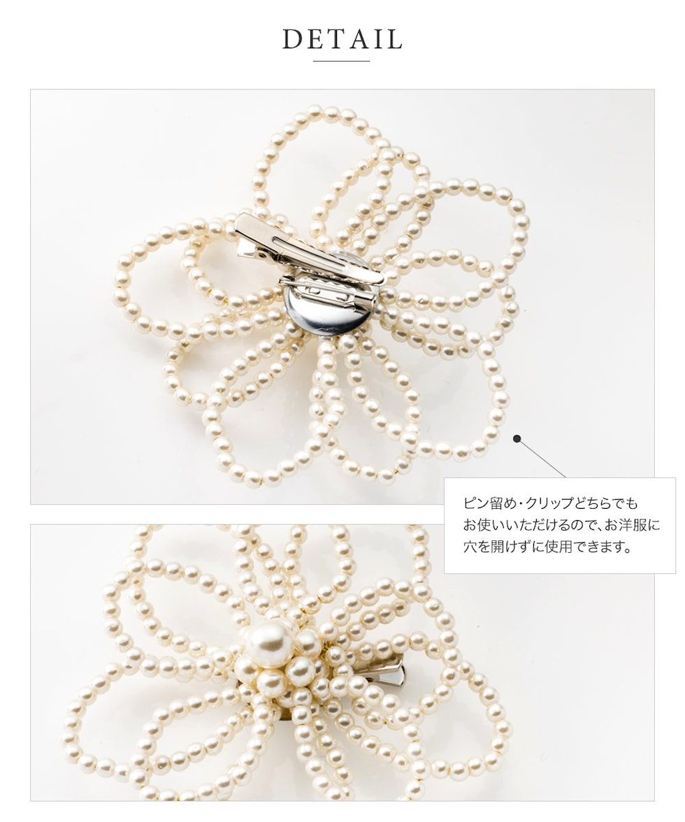 ブローチ コサージュ フォーマル 卒業式 卒園式 入学式 入園式 ママスーツ パール フラワー クリップ ピン 大きめ ホワイト cream dot ゆうパケット [ホワイト_ワンサイズ]