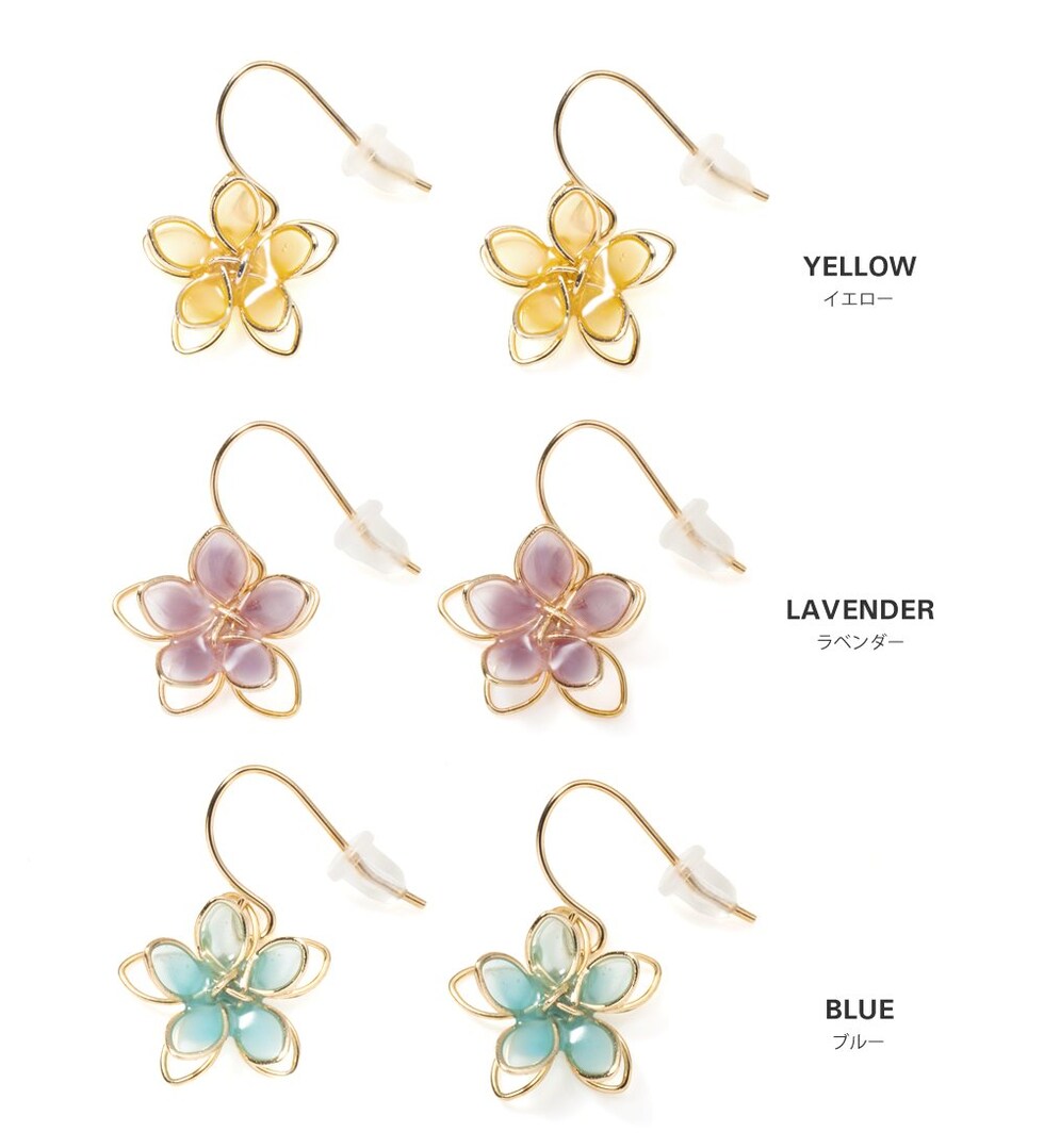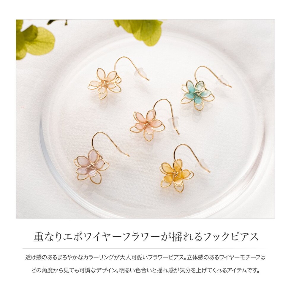 ピアス レディース フック 揺れる フラワー ワイヤーフラワー 繊細 エポキシ 透け感 立体感 cream dot ゆうパケット [イエロー_ピアス]