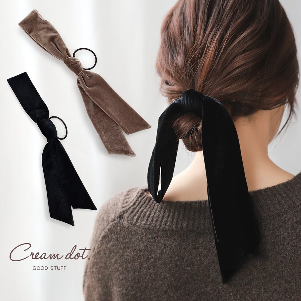 ヘアアクセサリー レディース ヘアゴム ベロア アシンメトリー アシメリボン ベルベット 髪留め まとめ髪 モカ cream dot ゆうパケット [モカ_ワンサイズ]