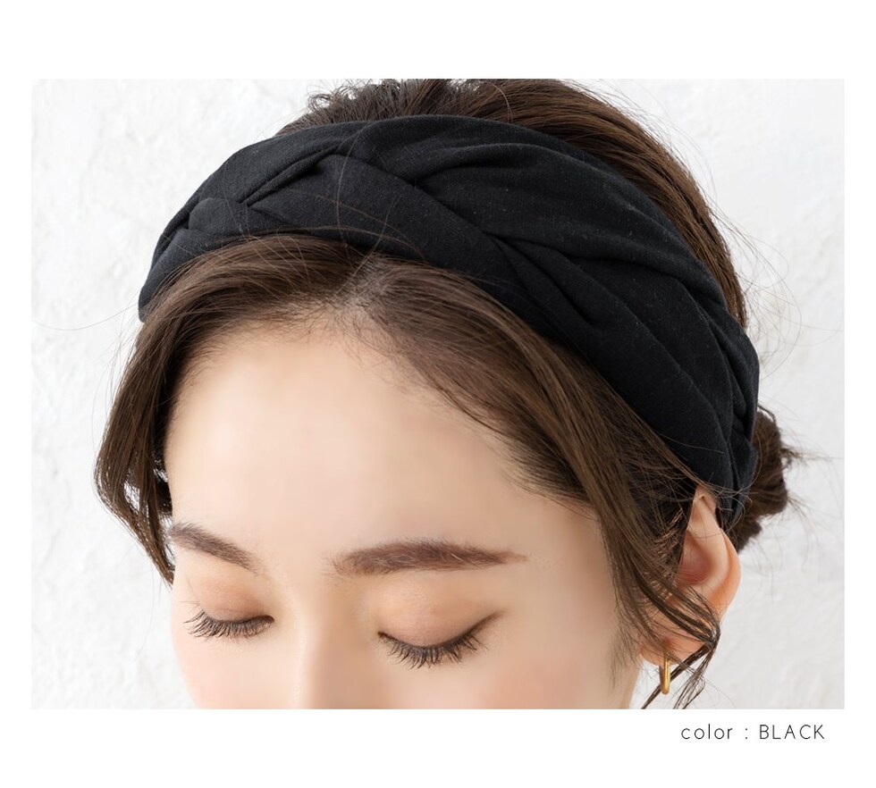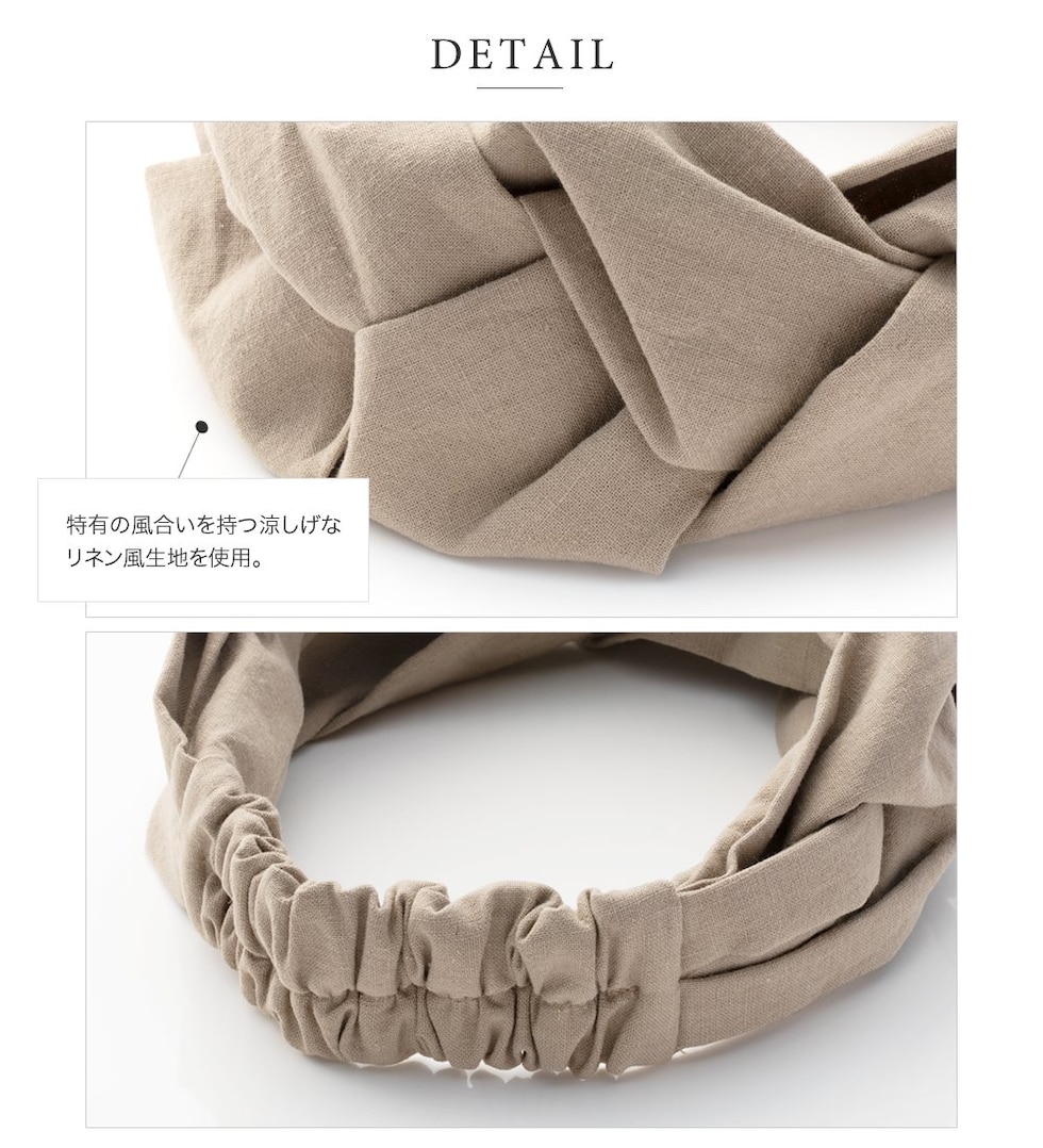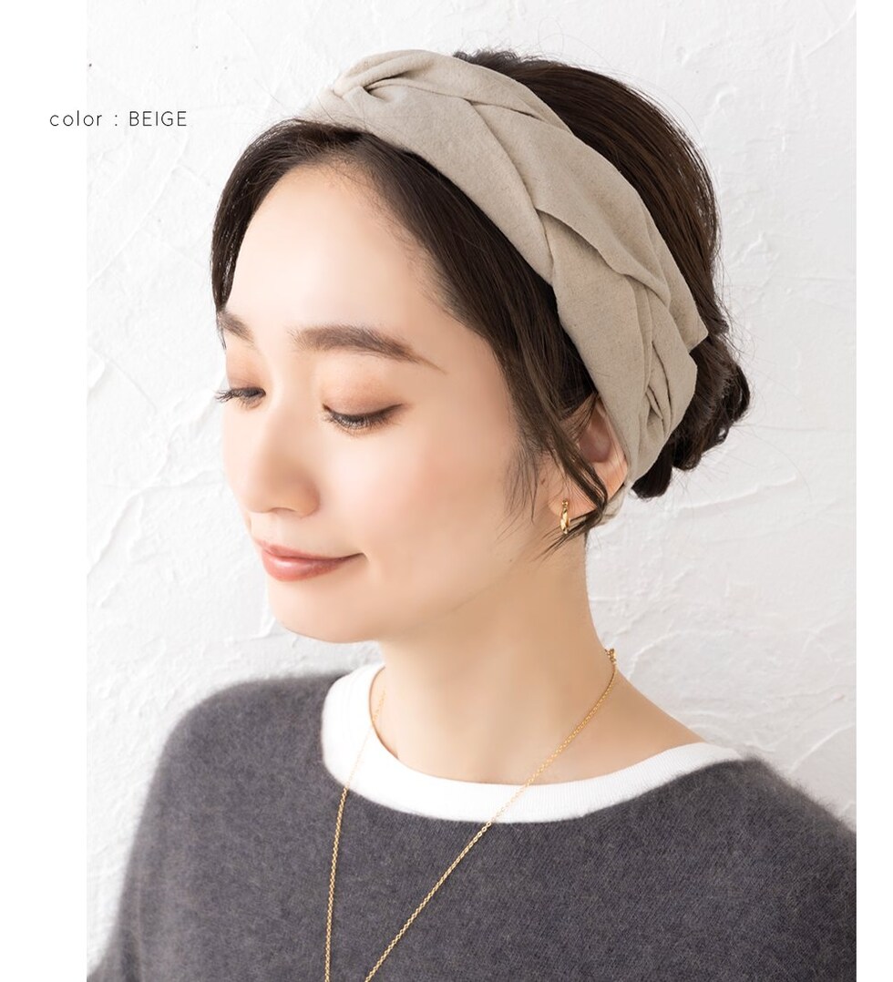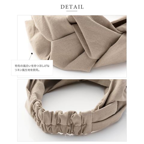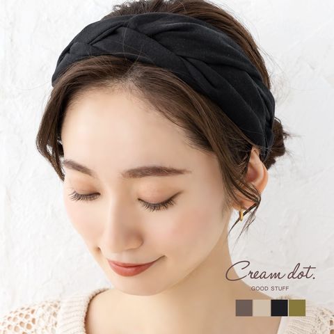 ヘアアクセサリー レディース ヘアターバン ヘアバンド 幅広 クロス ツイスト ワイド リネンタッチ 三つ編み 黒 cream dot ゆうパケット [ベージュ_フリーサイズ]
