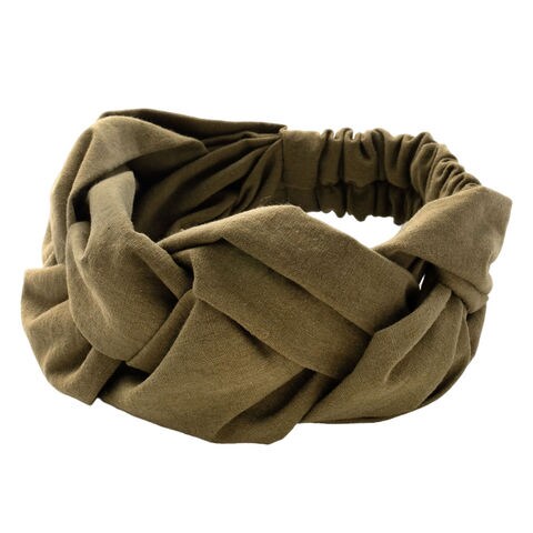ヘアアクセサリー レディース ヘアターバン ヘアバンド 幅広 クロス ツイスト ワイド リネンタッチ 三つ編み 黒 cream dot ゆうパケット [カーキ_フリーサイズ]