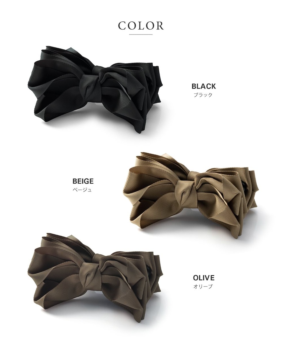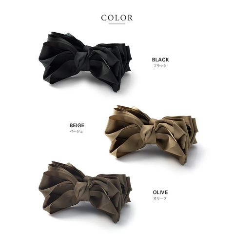 ヘアアクセサリー レディース バナナクリップ 大きめ しっかり留まる リボン ヘアクリップ 髪留め まとめ髪 重ねリボン ボリューム グログラン オリーブ cream dot ゆうパケット [ブラック_ワンサイズ]