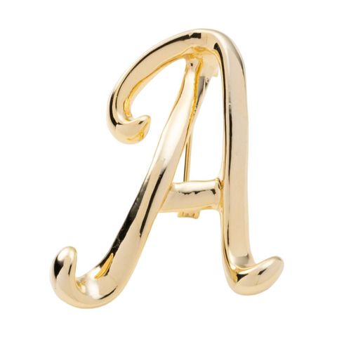 ブローチ イニシャル アルファベット ピンバッチ 2タイプ 艶 マット 筆記体 手書き風 普段使い ワンポイント cream dot ゆうパケット [A_艶ゴールド]