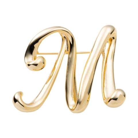 ブローチ イニシャル アルファベット ピンバッチ 2タイプ 艶 マット 筆記体 手書き風 普段使い ワンポイント cream dot ゆうパケット [M_艶ゴールド]