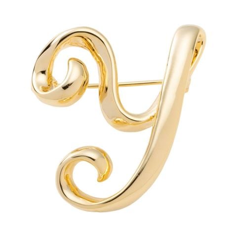 ブローチ イニシャル アルファベット ピンバッチ 2タイプ 艶 マット 筆記体 手書き風 普段使い ワンポイント cream dot ゆうパケット [Y_艶ゴールド]