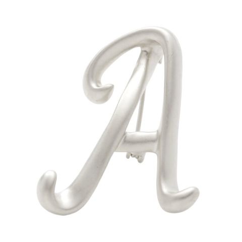 ブローチ イニシャル アルファベット ピンバッチ 2タイプ 艶 マット 筆記体 手書き風 普段使い ワンポイント cream dot ゆうパケット [A_マットシルバー]