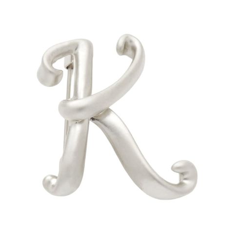 ブローチ イニシャル アルファベット ピンバッチ 2タイプ 艶 マット 筆記体 手書き風 普段使い ワンポイント cream dot ゆうパケット [K_マットシルバー]