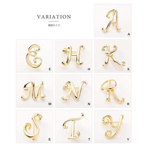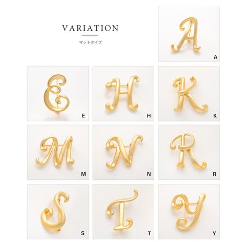 マット/艶感から選べるイニシャルブローチ。主張しすぎない程よいサイジングでデイリーコーデのアクセントとして活躍!ブローチとしてはもちろん、アクセサリーにアレンジしても可愛いシンプルデザインです。