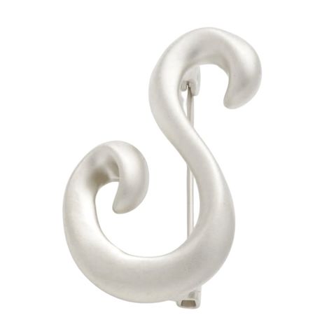 ブローチ イニシャル アルファベット ピンバッチ 2タイプ 艶 マット 筆記体 手書き風 普段使い ワンポイント cream dot ゆうパケット [S_マットシルバー]