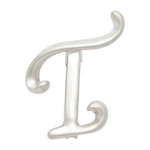 ブローチ イニシャル アルファベット ピンバッチ 2タイプ 艶 マット 筆記体 手書き風 普段使い ワンポイント cream dot ゆうパケット [T_マットシルバー]