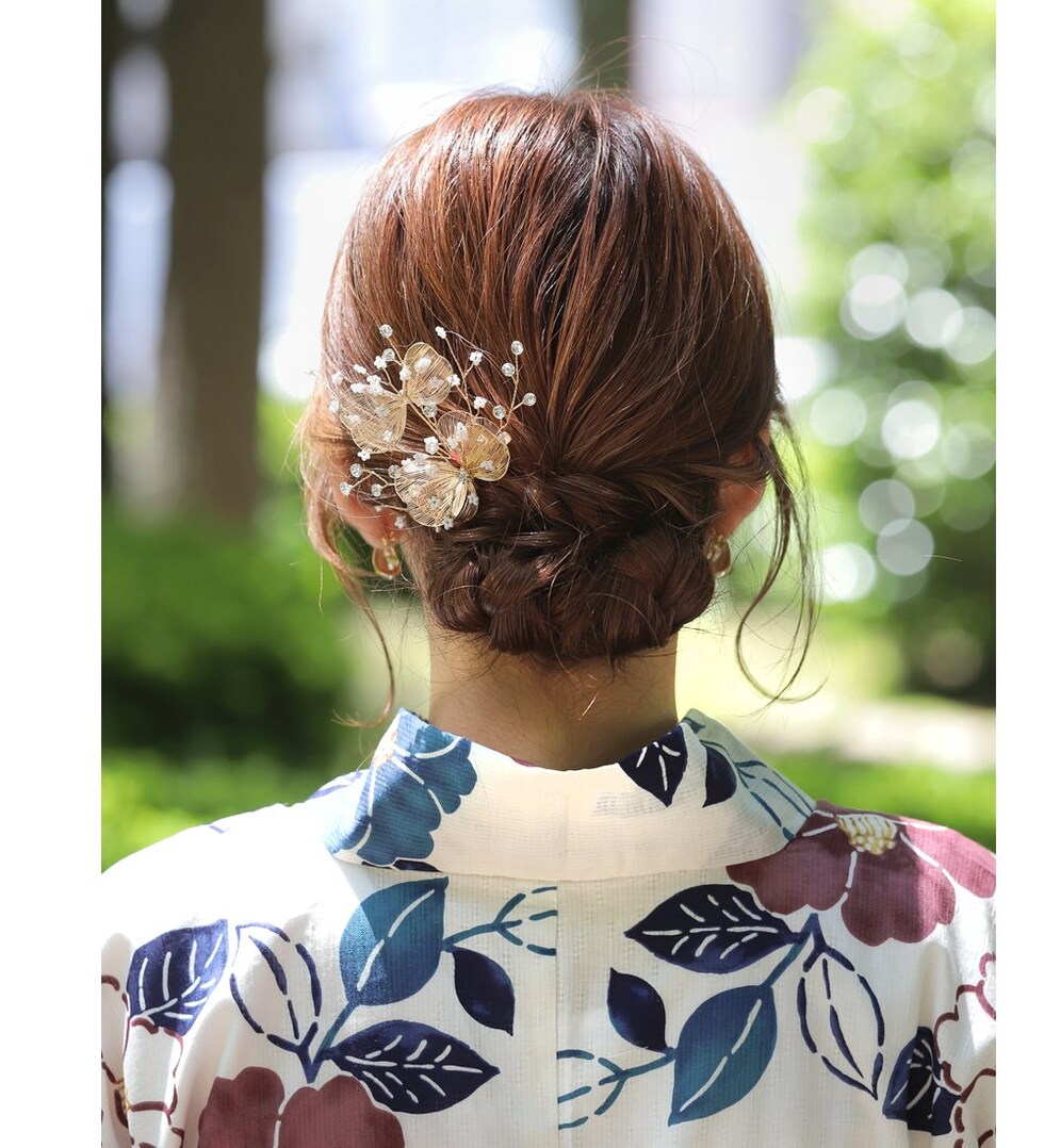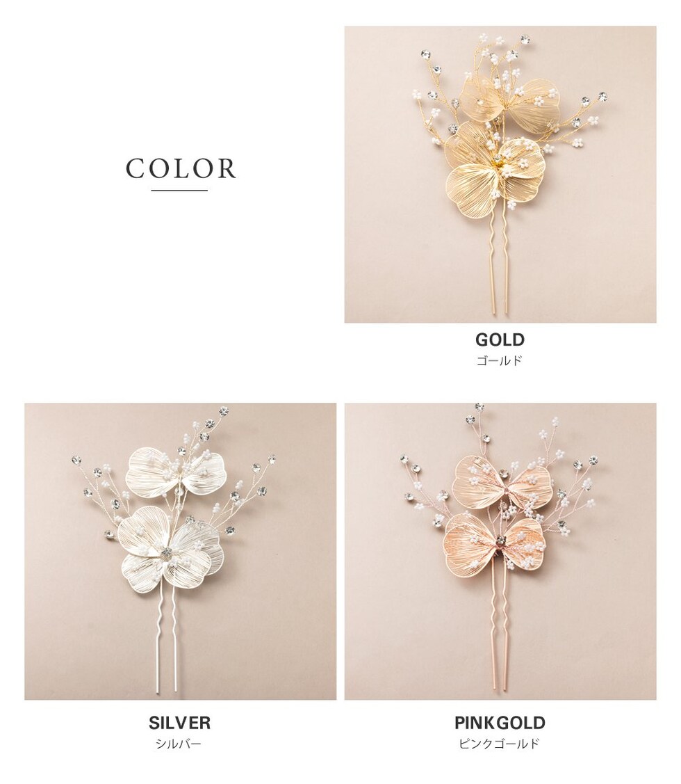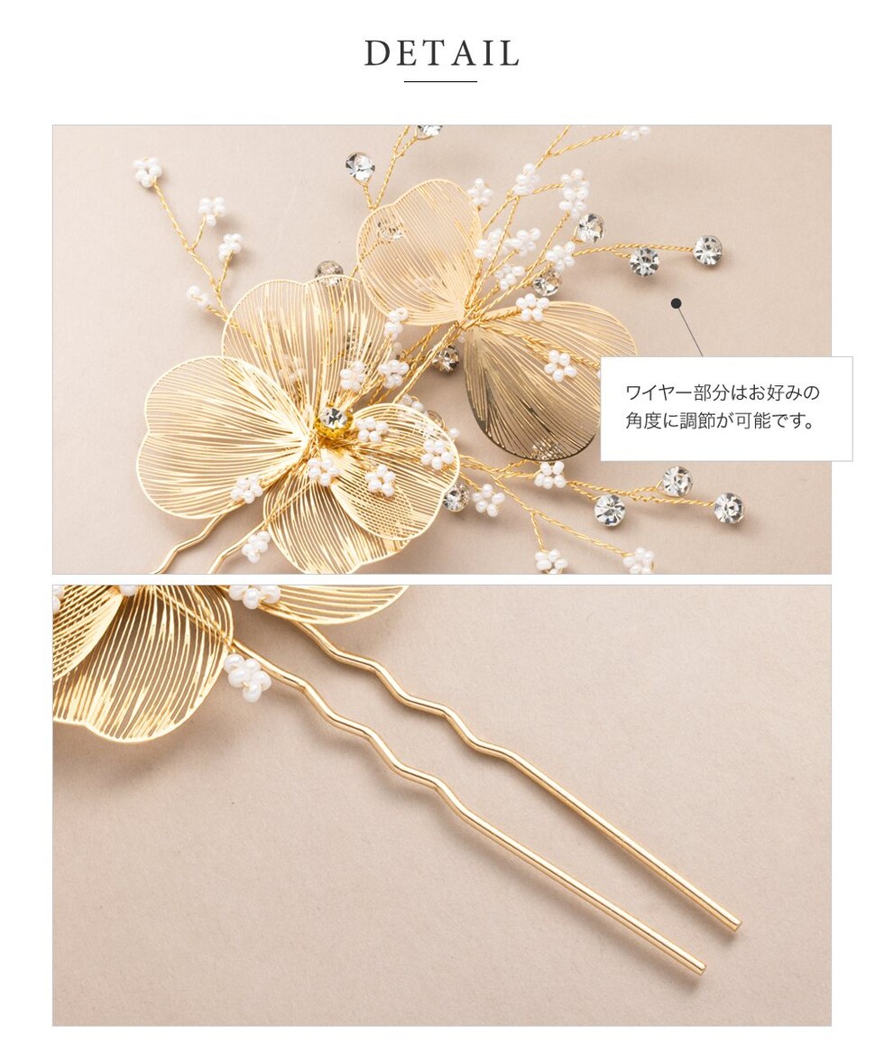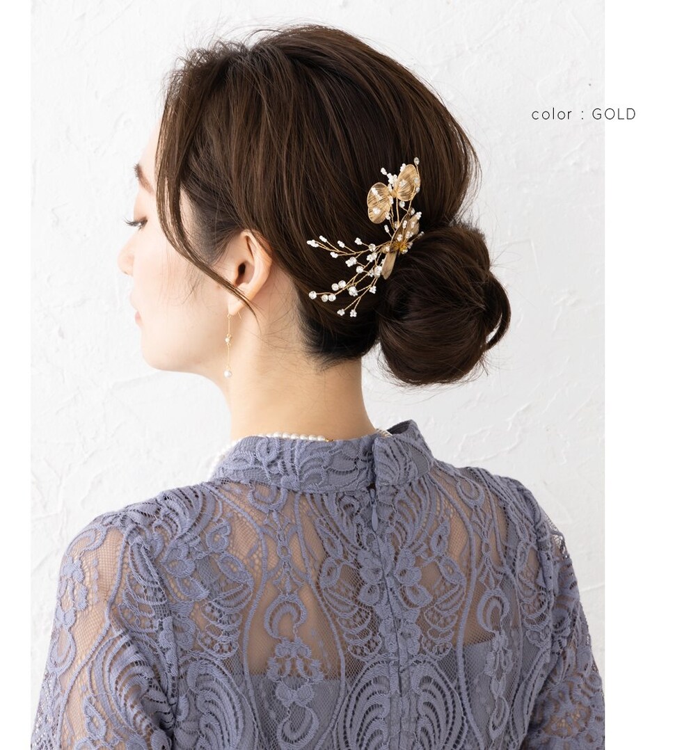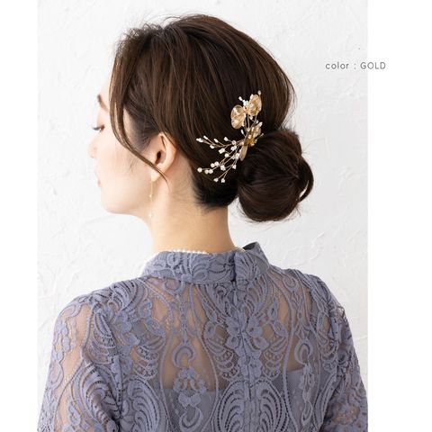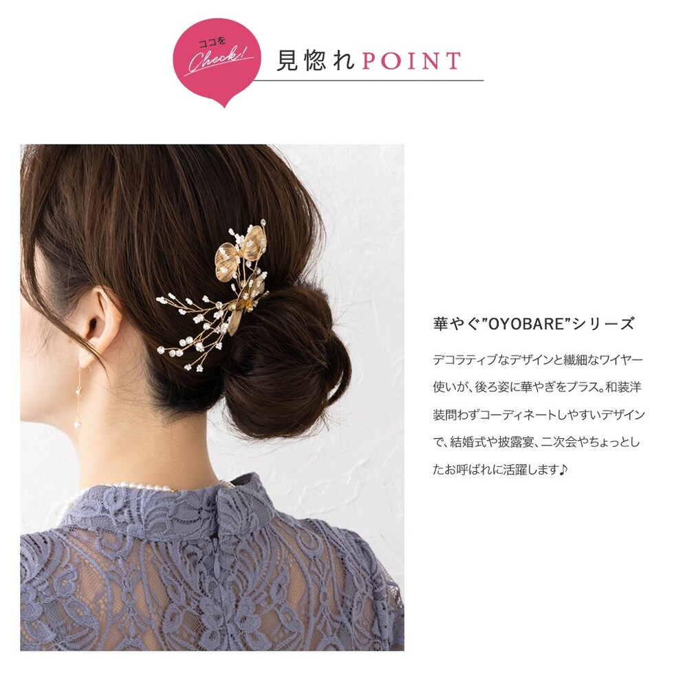 デコラティブなデザインと繊細なワイヤー使いが、後ろ姿に華やぎをプラス。和装洋装問わずコーディネートしやすいデザインで、結婚式や披露宴、二次会やちょっとしたお呼ばれに活躍します♪