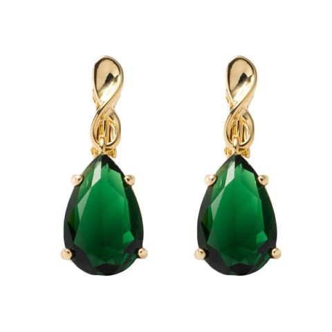 ドロップ型の大粒クリスタルガラスが耳元で煌めくピアス/イヤリング。ひねりを加えたメタルとのコンビで大人っぽく高見えします。お顔周りに品の良い華やかさをプラスしてくれるアイテムです。
